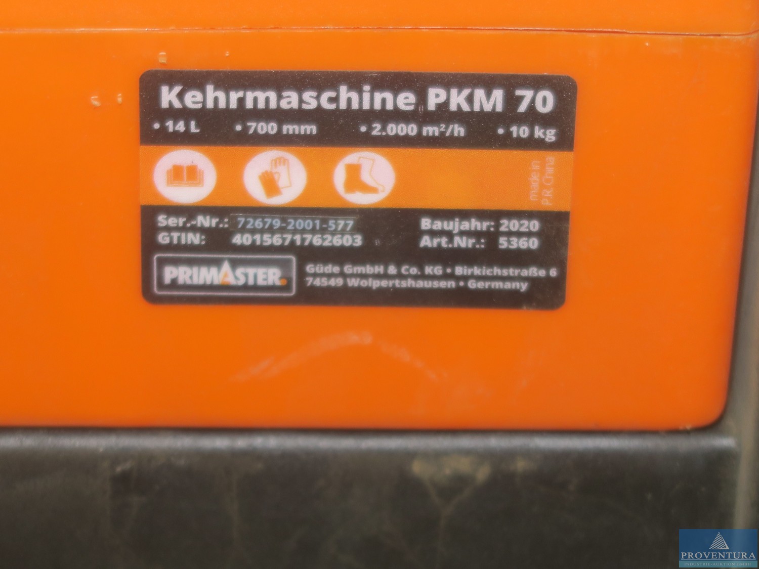 El süpürücü PRIMASTER PKM 70, çalışma genişliği 70 cm, koleksiyon hacmi 14 l, 2020 yıl