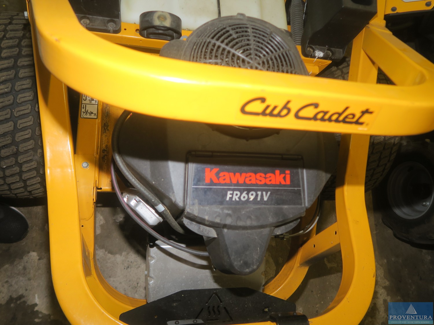 Sıfır dönüşlü çim biçme makinesi CUBCADET XZ5 Ultima Enduro Serisi, isim plakası n. bulundu, hidrostatik sürücü, kesme tablası bakım nedeniyle şu anda sökülüyor, motor KAWASAKI FR691V, işlevi Proventura tarafından kontrol edilmedi