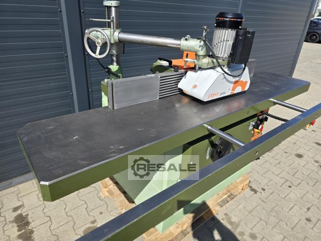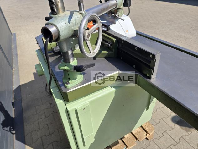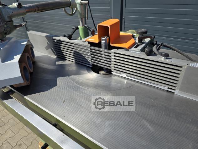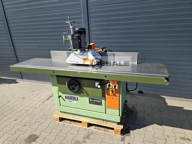 Fresadora de fuso Bauerle Eixo ajustável para cima e para baixo Mandrel FI30 (substituível) Tampos longos 220cm com altura culaga ajustável com vedações AIGNER Steff de alimentação de 3 rolos 5 velocidades do eixo Rotação esquerda-direita bloqueio do eixo freio