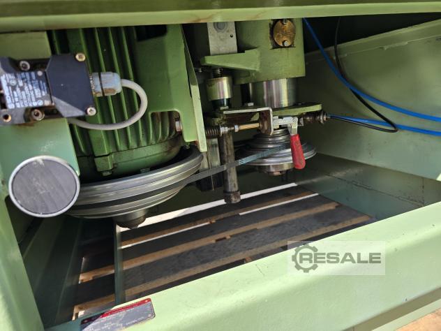 DADOS TÉCNICOS: Fuso: Ø 35 mm Inclinação do fuso: 0° - 45° Ajuste manual da altura do fuso Ajuste da direção de rotação Velocidade ajustável de 3000 a 10000 rpm Potência instalada: 5,5 cv EQUIPAMENTO: 1 acionamento de 3 rolos (Maggi Steff 2034)