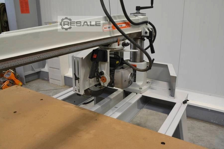 Especificações: Espaçamento do eixo uniforme: 32 mm Número de eixos: 23 Distância entre o primeiro e o primeiro último eixo na cabeça da broca: 672 mm profundidade de perfuração: 80 mm Tamanho da mesa: aprox. tamanho da peça de trabalho: 800 x 2500 x 100 Pressão de trabalho: 0,6 MPa Consumo de ar: 10 NL/ciclo Tensão, frequência: 400 V/50 Hz Velocidade do fuso / min.l: 2800 rpm. Potência motora: 1,5 kW Peso ca: 400 kg Dimensões: 1220 x 1065 x 1400 mm * Sistema espiral patenteado Dispositivos de programação e regulação de dispositivos horizontais e verticais Profundidade de perfuração. * Tesouras pneumáticas da cabeça * Perfurar a estrutura da cabeça de 0-90 graus com bloqueio em qualquer posição e ângulo de mudança de referência com cada ângulo * Cabeça com eixos de ligação rápida (os baldes de libertação rápida são um Zubehoer). ...