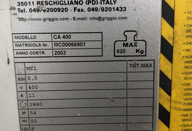 Maka V250 - Scie multi-lames Nom du produit: Scie multi-lame Type: V250 Manafacture: Maka Numéro de machine: 31209 Année de construction: 2010 État : utilisé, révisé et vérifié Détails techniques: - épaisseur de coupe max. : 110 mm - Largeur du tapis de transport : 250 mm - Longueur min. pièce: 280 mm (avec une chaussure pressurisée spéciale en bois - 1x disponible en échantillon) - Longueur des pièces à usiner : 560 mm - Vitesse d’avance du tapis de transport : 0-36 m/min - Max. largeur de débit: 680 mm - Hauteur de la table de travail par rapport au sol : 780 mm - Diamètre de l’ouverture d’aspiration : 250 mm - Poids : env. 1 700 kg Données du moteur : - Puissance totale : 18 kW - Tension : 400 V - Courant: 34 A - Vitesse : 2 930 / 3 515 tr/min Dimensions de la machine/réglage (L x L x H) : 2 750 x 1 790 x 1 850 mm - Nombre d’uni ...
