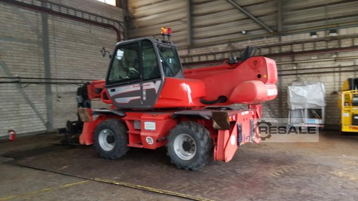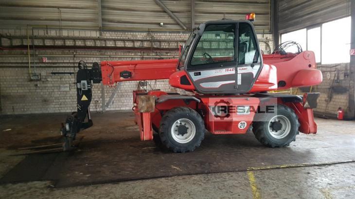 Telescopic forklift/ off-road forklift with four-wheel drive and rotatable top car Manufacturer Manitou Type MRI 1640 Built in 2011 Top condition! Only about 4,500 hrs Expert opinion on obtaining a business run for road traffic! Type of drive : Diesel Capacity: 4,000 kg Load center of gravity: 500 mm Safety device/lasthebe limitation Weight: 13,000 kg Tyres: 4 x air 400/70 - 20 14 PR Lifting scaffold type : Telescope Lifting height: 15,800 mm Height: 2,970 mm Fork tin length: 1,200 mm Engine : PERKINS Steering: all-wheel steering, 3 steering types Hydraulic lines for attachments on the telescopic head with quick-release couplings Closed cabin with heating Two-part door Reversing warning signal Street lighting front+rear