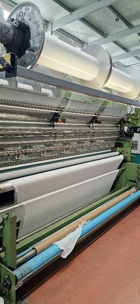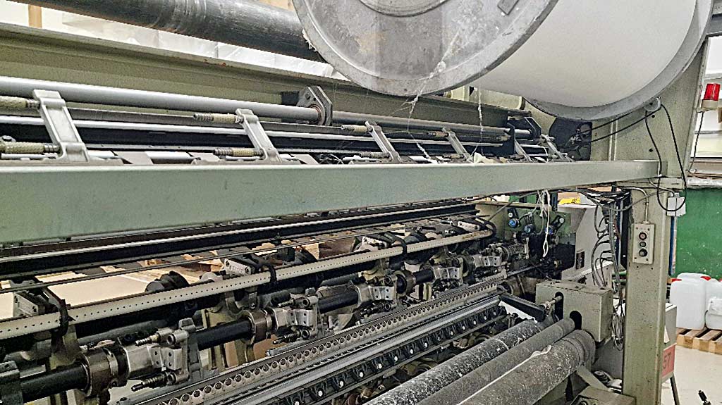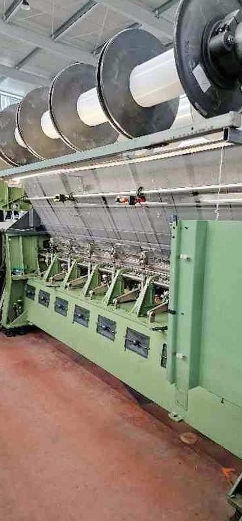 A)01 Karl Mayer Direct Warper – ZM – SP 1700/1000 year 1997, working width 180 cm, Max. Beam Flange Diam. 1,016 mm with 01 Karl Mayer warping creel, H-type, 630 creeling positions Disc brakes, electr. stop motion, pitch 30 cm – adjustable abbot. 60-70 fractional beams (for direct warper and sizing) B)01 Karl Mayer Rotal Sizing machine, type ELC-O-TENS year 2000, with Pleva humidity and tension control, warp beam creel, for max. 16 warp beams Nom. working width 180 cm max. beam flange Ø 1,016 mm pneum. Brakes 1 sizing double trough Nom. working width 180 cm Pre-Wetting double dip and squeeze roller pair Cylinder Dryer 10 drying cylinder Ø 800 mm Partitioning Field Abt. 4.5 mtrs. Waxing device Beaming machine / headstock max. nom. working width 240 cm, max. beam flange Ø 1100 mm speed up to 140 m/min Beam Pressure Device Size kitchen turbo cooker,
