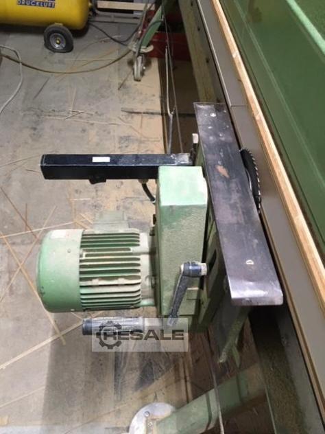 Mayer FH2-3120 veneer saw, fine-cutting saw with joining unit (planing unit) and veneer stop table Robust mechanical engineering from Mayer A video of the running machine can be sent on request. For tear-free and joint-tight cutting of veneer, including heavy-cut veneer Cutting length max. 3100mm The sawing unit and joining unit are combined in one unit, so that only one unit has to be moved. Easy to guide sawing unit, runs on linear guides. Rear storage table with penetrating finger stop, adjustable from approx. 2 - 62cm, with pneumatic clamping and digital display Pneumatic workpiece clamping Drive motor saw 1.8kW, milling 1.0kW The motors can be switched on practically on the handle, so they only run when they are needed. HM-tipped fine-cut blade, sharpened Plough head Z4, equipped with new carbide indexable inserts Practical front veneer shelf, pull-out for pla ...