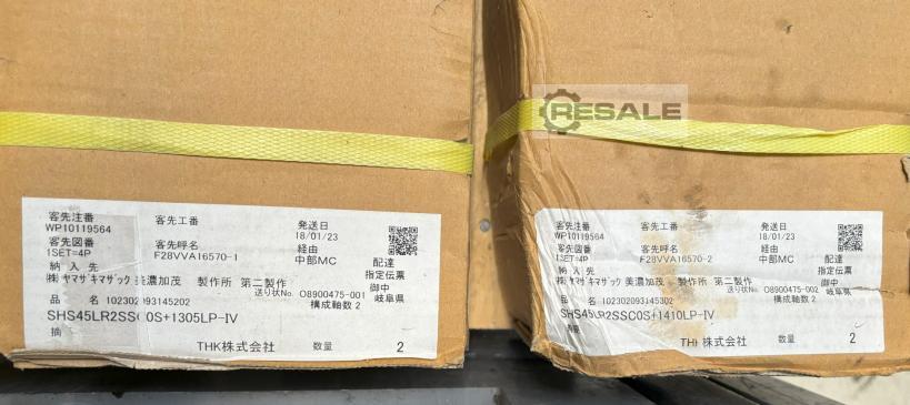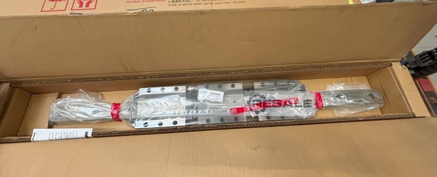 1 juego de guías lineales (ejes X y Z) para Mazak Multiplex 6300 BJ. 2008. Este juego queda actualmente, ya que solo se pueden pedir juegos completos para HD1 y HD2. Son de 2020 y están en su embalaje original. Las cajas solo se abrían para tomar fotografías.