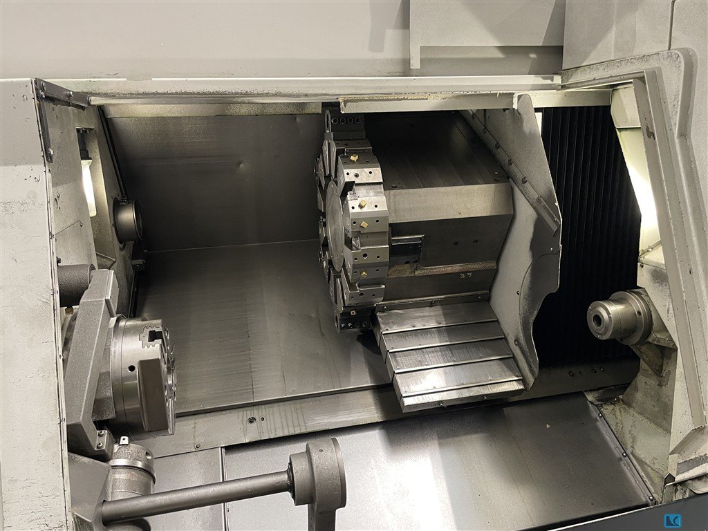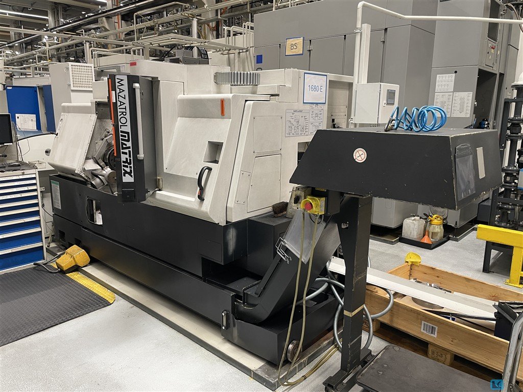 1 pc CNC lathe MAZAK QT Nexus 250-II MSY Year of construction 2016 Mazatrol Matrix II Max. turning diameter 380 mm Max. swing diameter 695 mm Distance between jaws 539.5 mm Max. bar passage 80 mm Travel X/Y/Z/W 234/100/625/585 mm Main spindle 26/22 kW Main spindle Max. speed 4,000 rpm Main spindle spindle nose A2-8 Sub-spindle 11/7.5 kW Sub-spindle Max. speed 6,000 rpm Sub-spindle spindle nose A2-5 12-speed tool turret 12 driven tool stations, 5.5 kW Driven tools max. speed 5,000 rpm Toolsetter Parts catcher Chip Conveyor, Right Discharge High-pressure pump, 15 bar Interface for bar feeder Bar Feeder 1 pcs bar loading magazine 1 set of tool holders, 8 fixed + 3 driven tool holders CE mark Documentation