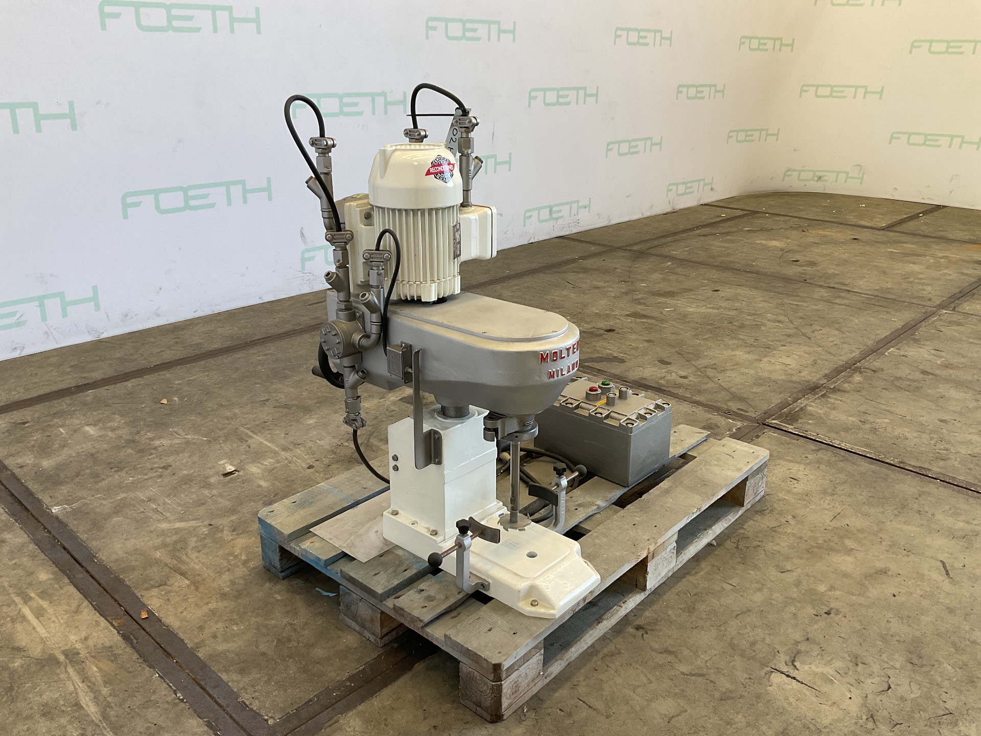 General SKU002H003 MakeMolteni Milano TypeTM 5 - SV No.26-5 Year of construction1979 LocationBarneveld Main Features MaterialStainless steel Volume5 Ltr. Motor0.95 KW Specified Features - Dissolver MaterialStainless steel 1.4301 (304) Dissolvercheck Shaft length200 mm Disc diameter80 mm Motor0,80/0,95 kW, 380 Volt (Ex) With variable speed drivecheck Speed mixing shaft± 400-2400 rpm: without mixing pan With mechanical liftingcheck Information With switchcheck Floorspace0,8 x 0,6 m Total height1,0 m Weight140 kg ATEX compatiblecheck Extra SpecificationsRECONDITIONEDDissolversCatalysts & fillersSolventsDetergent & surf.Other pharmaceuticsLubricants & oleoOther feedDyes & pigmentsMinerals & inorganicOther chemicalReconditionedFine chemicalsOintmentsPaints & coatingsOils & fatMolteniMixers > DissolversIndustries > Chemical > Catalysts & fillersIndustries > Chemical ...