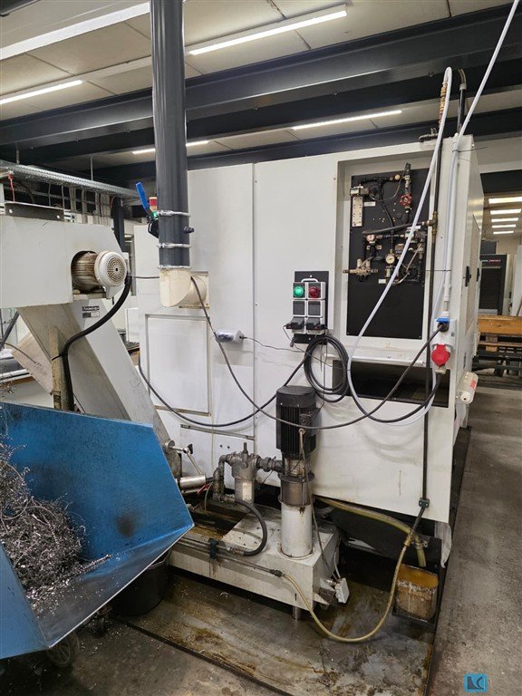 turning diameter:356 mm turning length:700 mm y-axis:±60 mm spindle drive:18 kW counterspindle motor:15 kW Direct drive for driven tools:5,5 kW Motor starting torque:640 Nm Main spindle mount:A2-8 counter spindle mount:A2-6 Rod passage:80 mm main spindle speeds::4.000 U/min Drehzahl angetriebene Werkzeuge :6.000 U/min rapid traverse speed:30 m/min auf X- und Z-Achse machine weight ab.:5.800 kg 12-station turret, all positions driven C-axis on both spindles Belt-driven and infinitely variable drive on all motors Prismatic guideways on all axes Oil cooler for both spindles, manufacturer Daikin Automatic, dialog-guided programming system MAPPS Automatic monitoring of tool load and tool wear Two Renishaw measuring arms for automatic tool measurement Interfaces: USB, PCMCIA card, and RS-232 port Interface for bar feeder Automatic parts catcher Dual foot pedal for independent opening and clos ...
