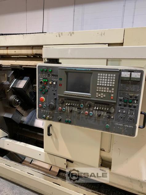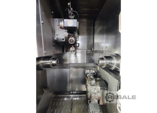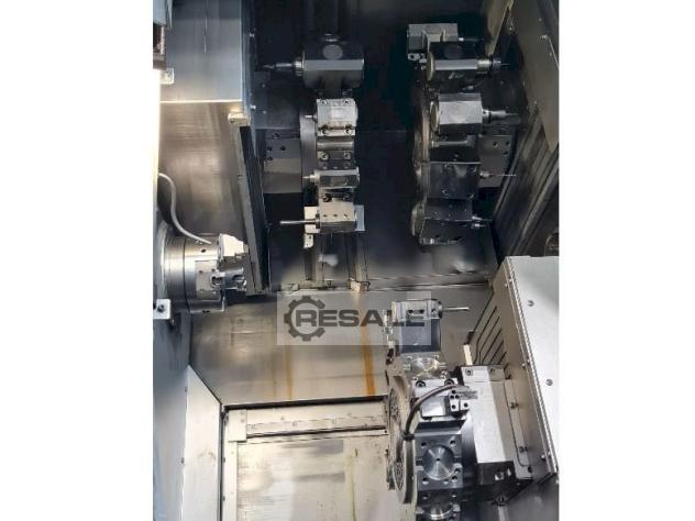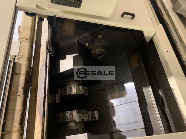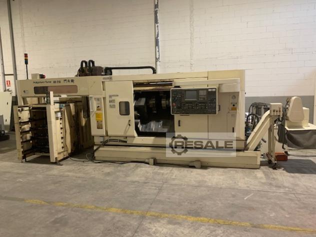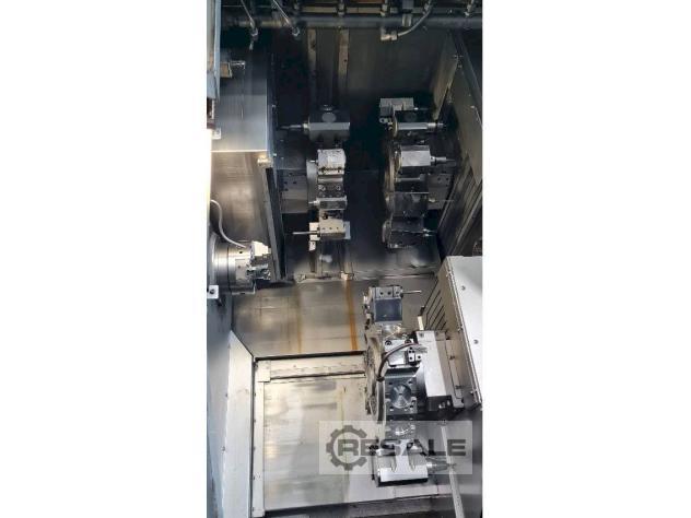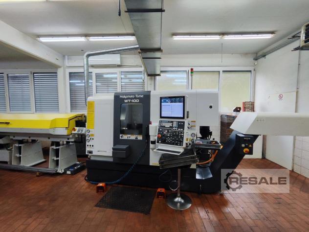 Torno CNC - torreta doble - eje Y del subhusillo NAKAMURA WTS150, CNC Fanuc, Serie 16i-T, Husillo - Subhusillo, 3x torretas, herramientas motorizadas + 2 ejes Y (fresado), 2x eje C, Cinta transportadora, Cargador de barras LNS (barras cortas) Máquinas herramienta Mimu Italia