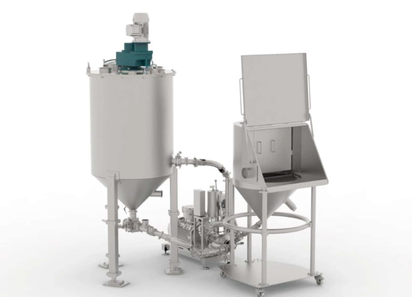 不锈钢搅拌罐 150 l. 带螺旋搅拌器,用于在研磨、注射等之前进料和混合 体和液体,包括通过齿轮电机驱动 3.6 kW、带视镜的盖子、带螺旋桨的搅拌轴(200 mm,带氧化物陶瓷涂层)。非常好的条件