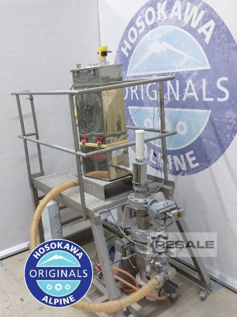Sistema usado Hosokawa Alpine AFG 140 totalmente renovado por Alpine Originals. El molino de chorro clasificador opuesto de lecho fluidizado Hosokawa Alpine AFG es perfecto para la molienda súper fina de diferentes materiales secos con un control preciso sobre el corte superior de la partícula gracias a su diseño de rueda clasificadora integrada, utilizando el cabezal clasificador Hosokawa Alpine Turboplex ATP. Este micronizador se puede utilizar para pulverizar diferentes productos gruesos a polvos más finos y dentro de diferentes industrias donde se puede necesitar micronización, como minerales, productos químicos, alimentos, productos farmacéuticos, cosméticos, etc. Este molinillo es capaz de procesar productos gruesos duros de hasta aprox. 10 Mohs de dureza sin mucho desgaste y alcanzando valores de finura de producto final extremadamente altos entre d97 4 y 100 micras d ...