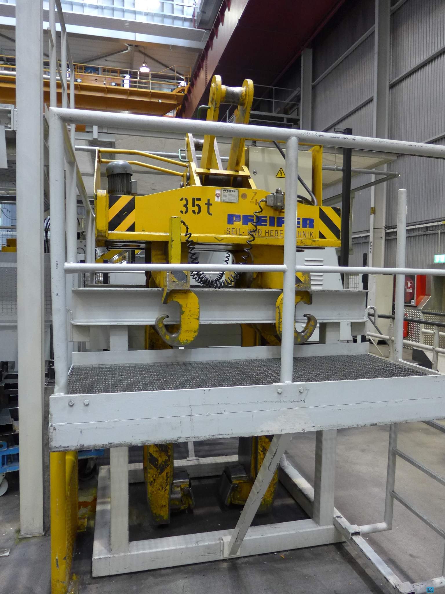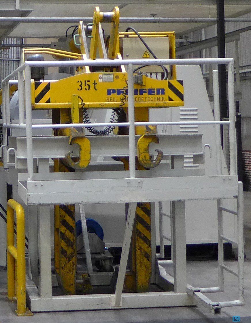 TONGS:. - capacity:35000 kg - Gripping range:2000 mm - Tare weight:2665 kg ELECTRICAL SPECIFICATIONS:. - total power consumption:1.1 kW - mains voltage:400 V - mains frequency:50 Hz DIMENSIONS / WEIGHTS:. - space requirements length:2770 mm - space requirements width:1700 mm