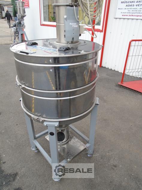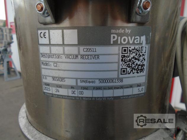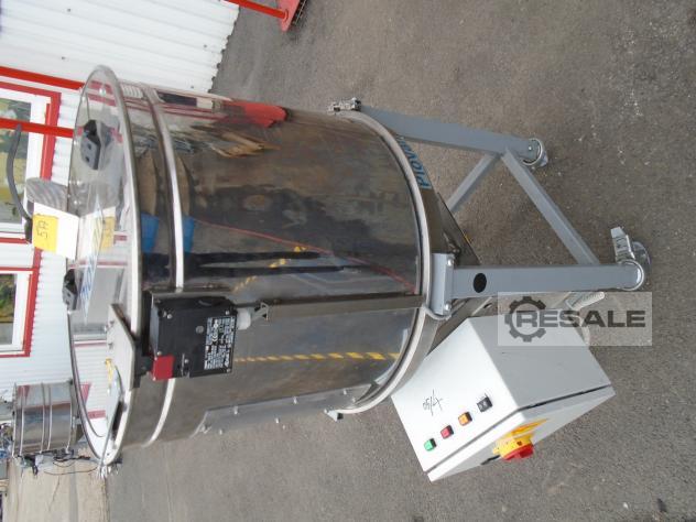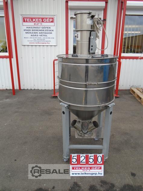 Piovan granulate tank, + inverter+ PLC #5249 With safety top door. Tank diameter 650 mm Tank height: 800 mm Overall size: 650x800x1300 mm