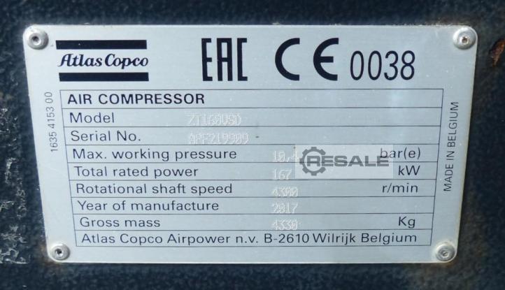 Sprężarka śrubowa ATLAS COPCO ZT160VSDFF