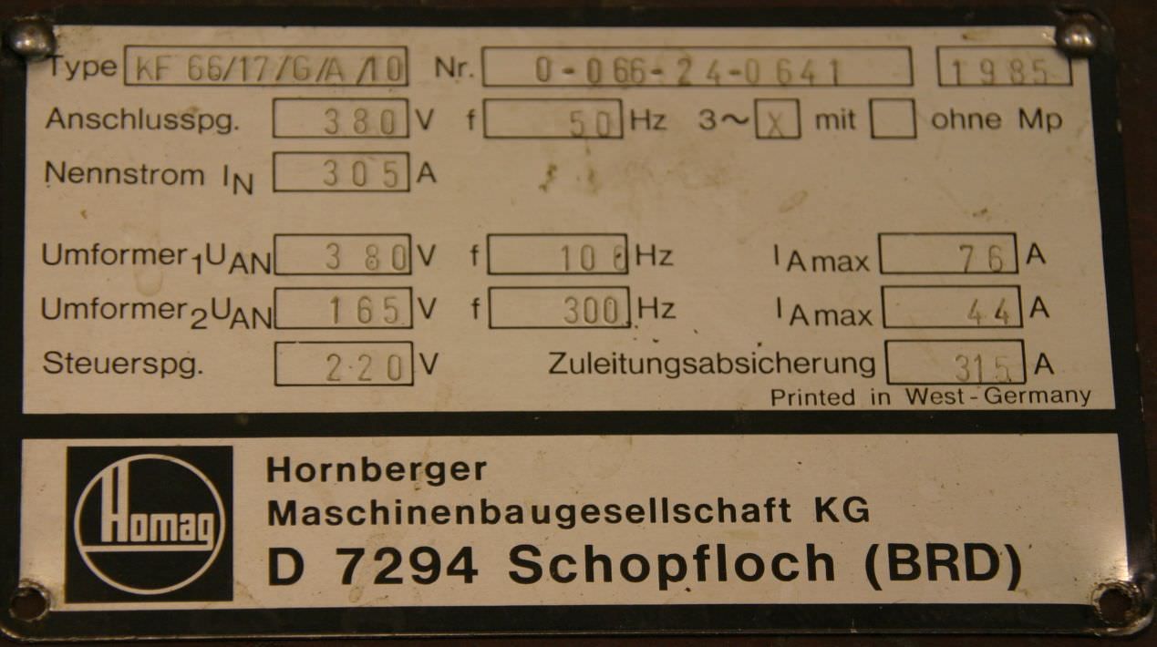 | HOMAG | KF66/17/6A/10 | 850 EUR |