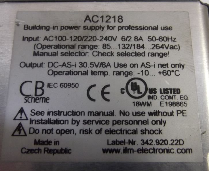 | IFM | AS-i Power Supply AC1218 | 130 EUR | |