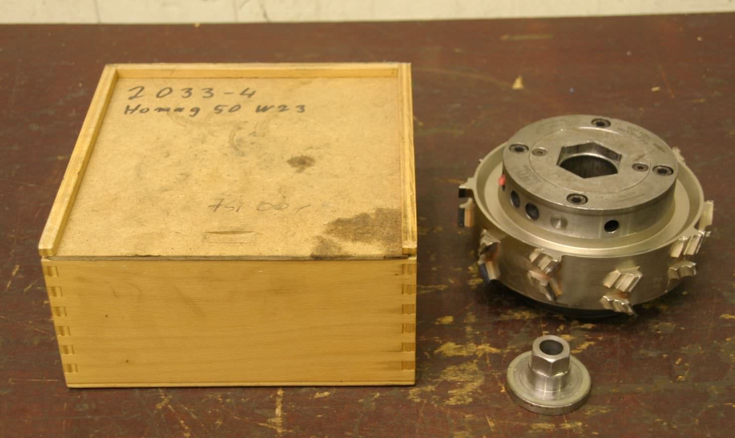 Wood milling cutter, milling head, milling tool, wood milling cutter, profile milling cutter -Manufacturer: LEUCO -Type: Ø 212x40x60 20° -Outer: Ø 212 mm -Angle: 20° -Socket: Ø 60 mm -Hole circle: 100 mm -Number: 2x milling cutters available -Price: per piece -Weight: 8 kg