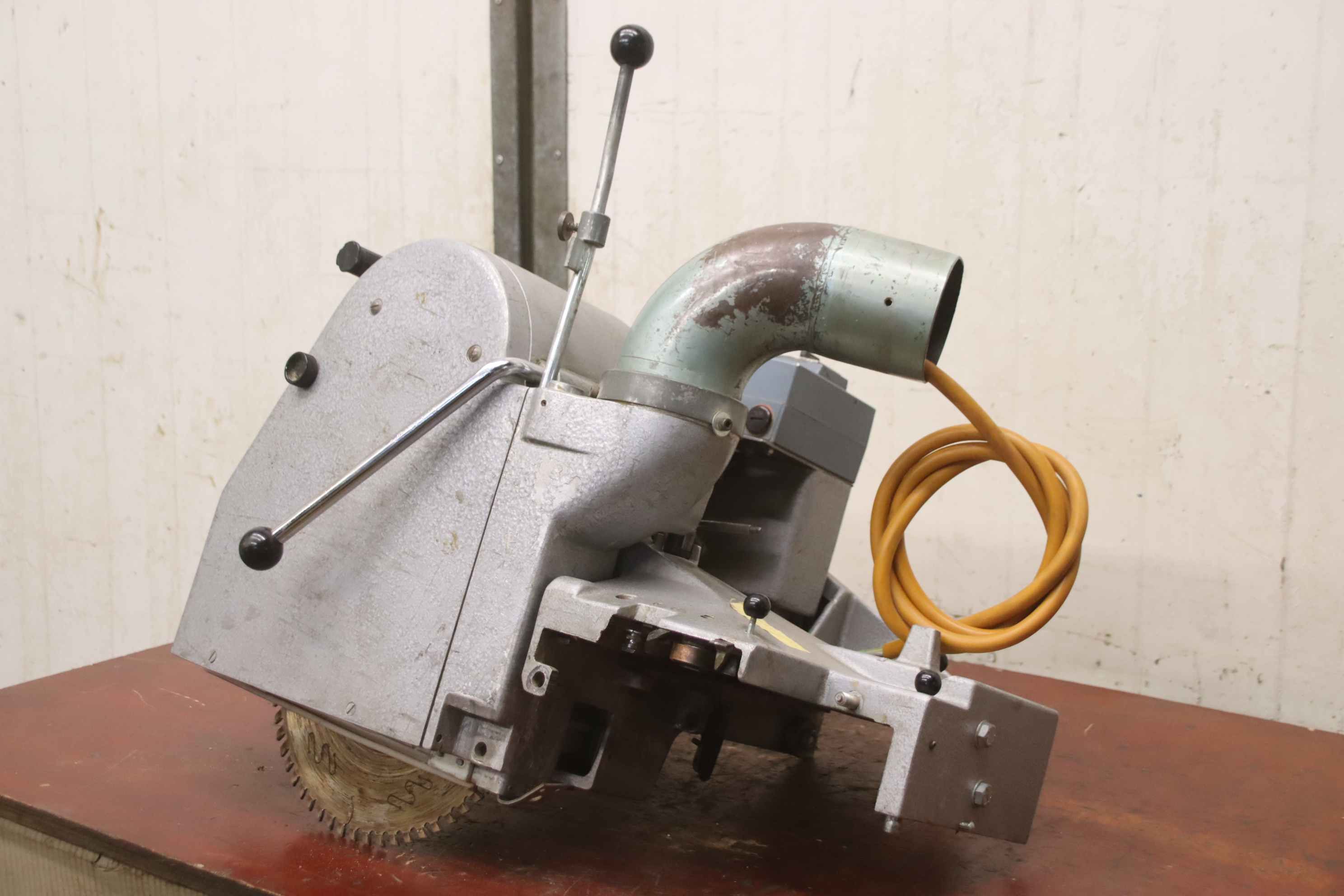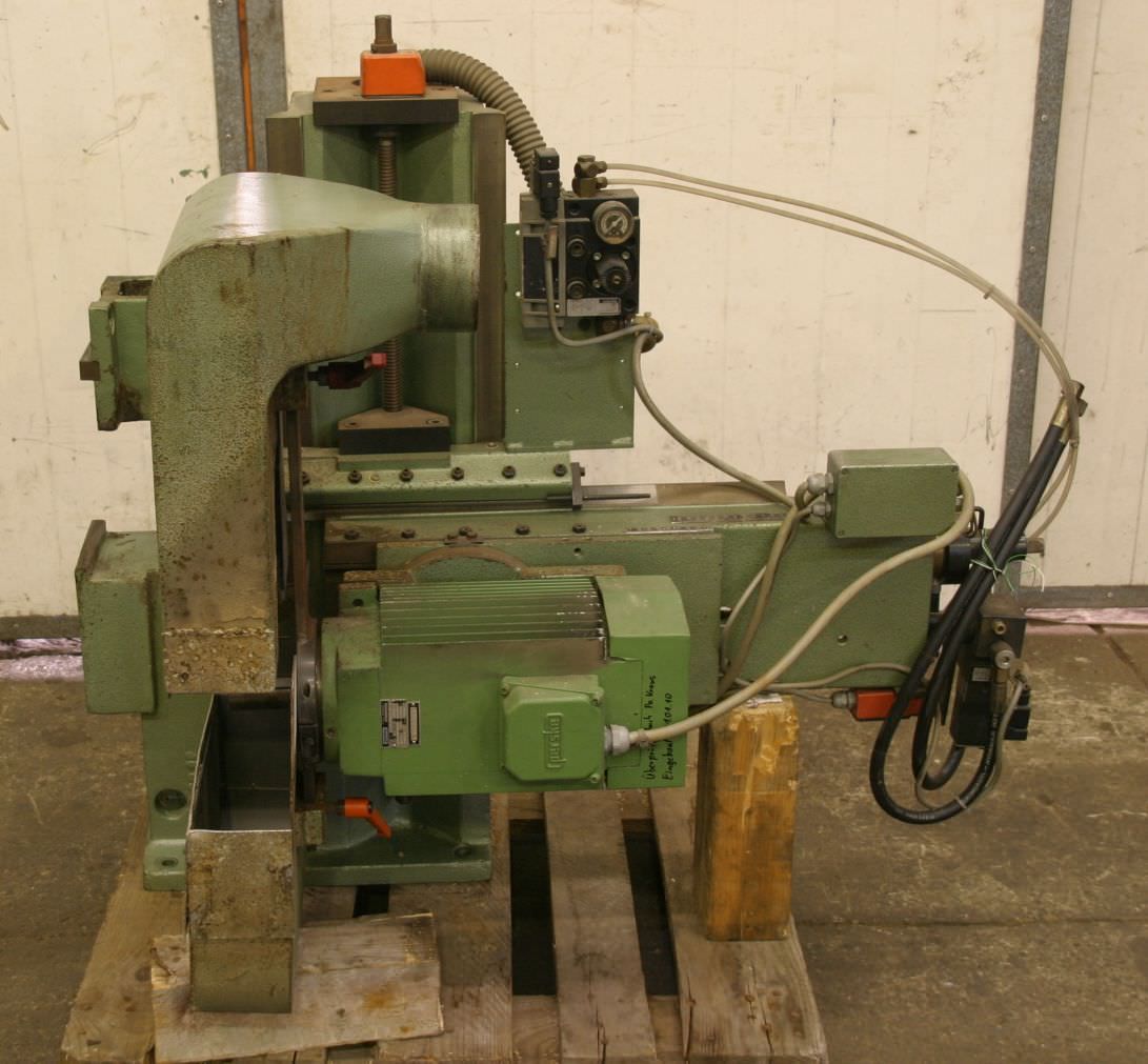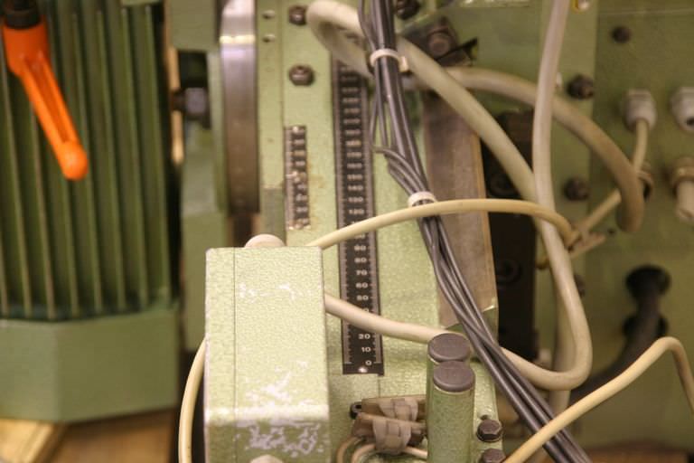Double end profiler, edge processing machine, scoring motor, chipper motor, milling motor, spindle motor -on dovetail guide, cross table -With guide for cutting veneer edges -Power: 0.15 kW 11160 rpm at 200 Hz -Voltage: 133 volts -Admission: -Tool: Ø 150 mm -Dimensions: 880/260/H300 mm -Weight: 18.5 kg