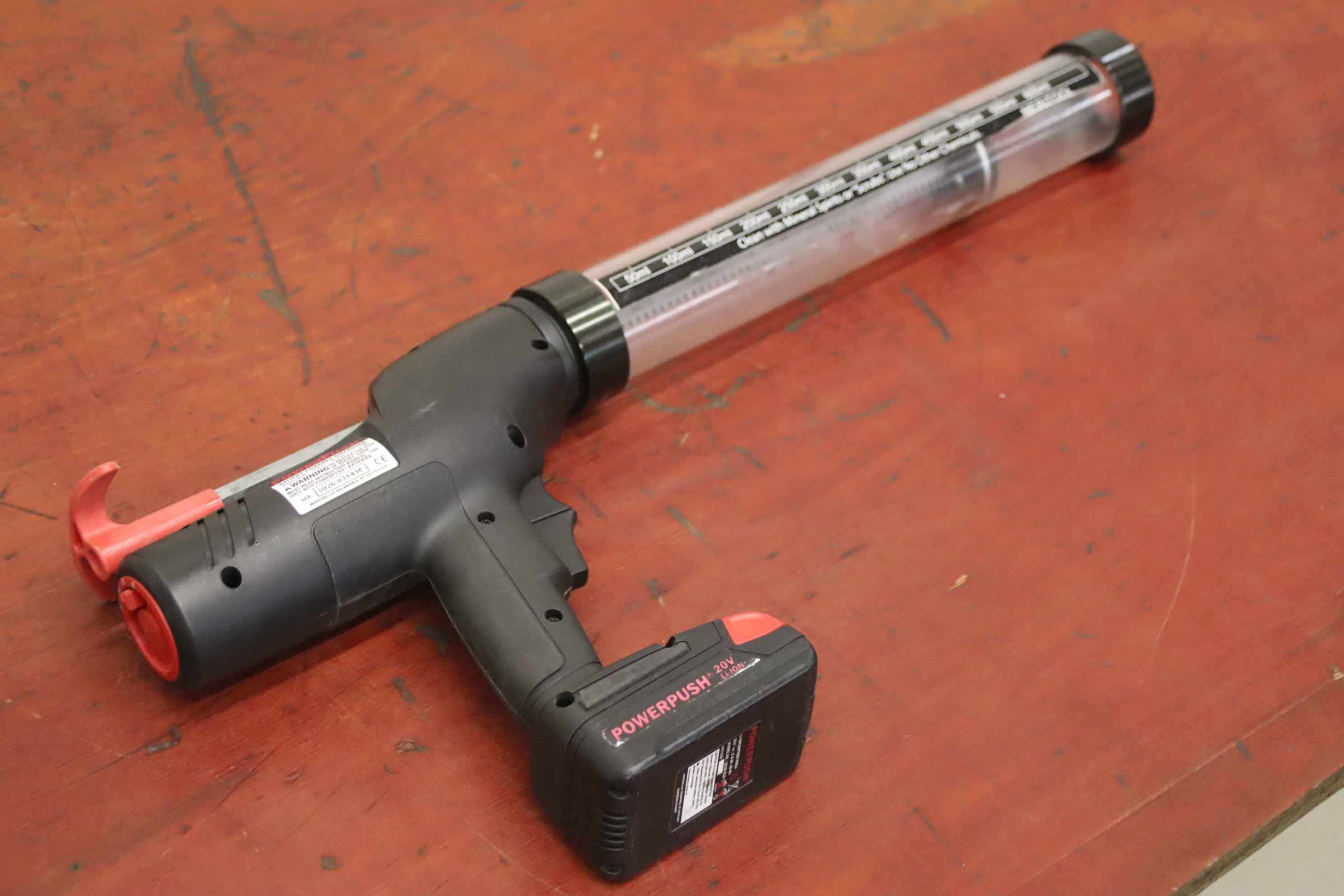 2-component gun, multi-function gun, cartridge gun, cartridge press, battery gun, battery-powered cartridge press-Manufacturer: Meritool, cordless gun PowerPush 5026 Type 2-Cartridge: 600 ml-Accessories: incl. battery 20 V, see photos-Dimensions: 630/80/H290 mm-Weight: 2.3 kg