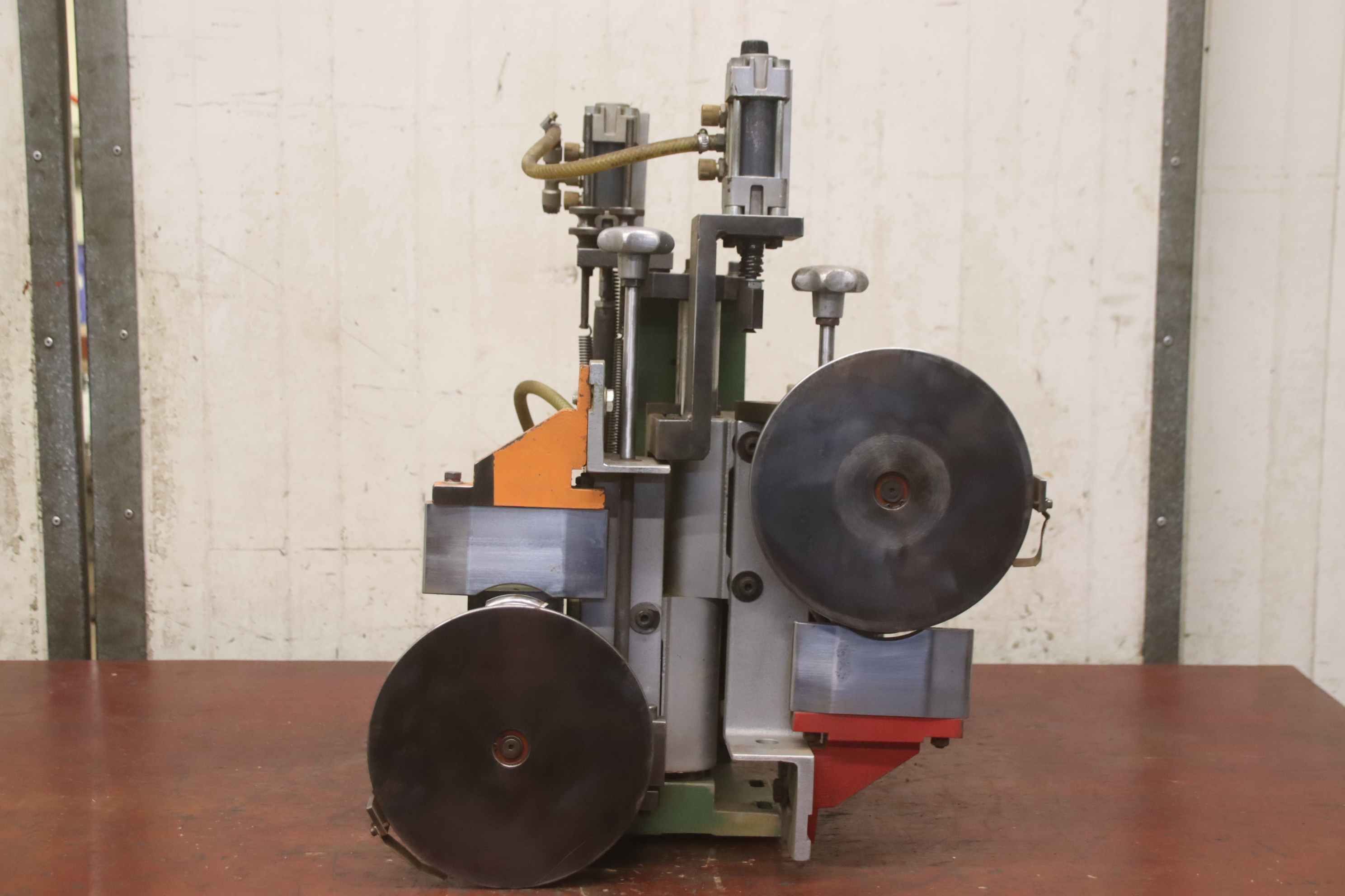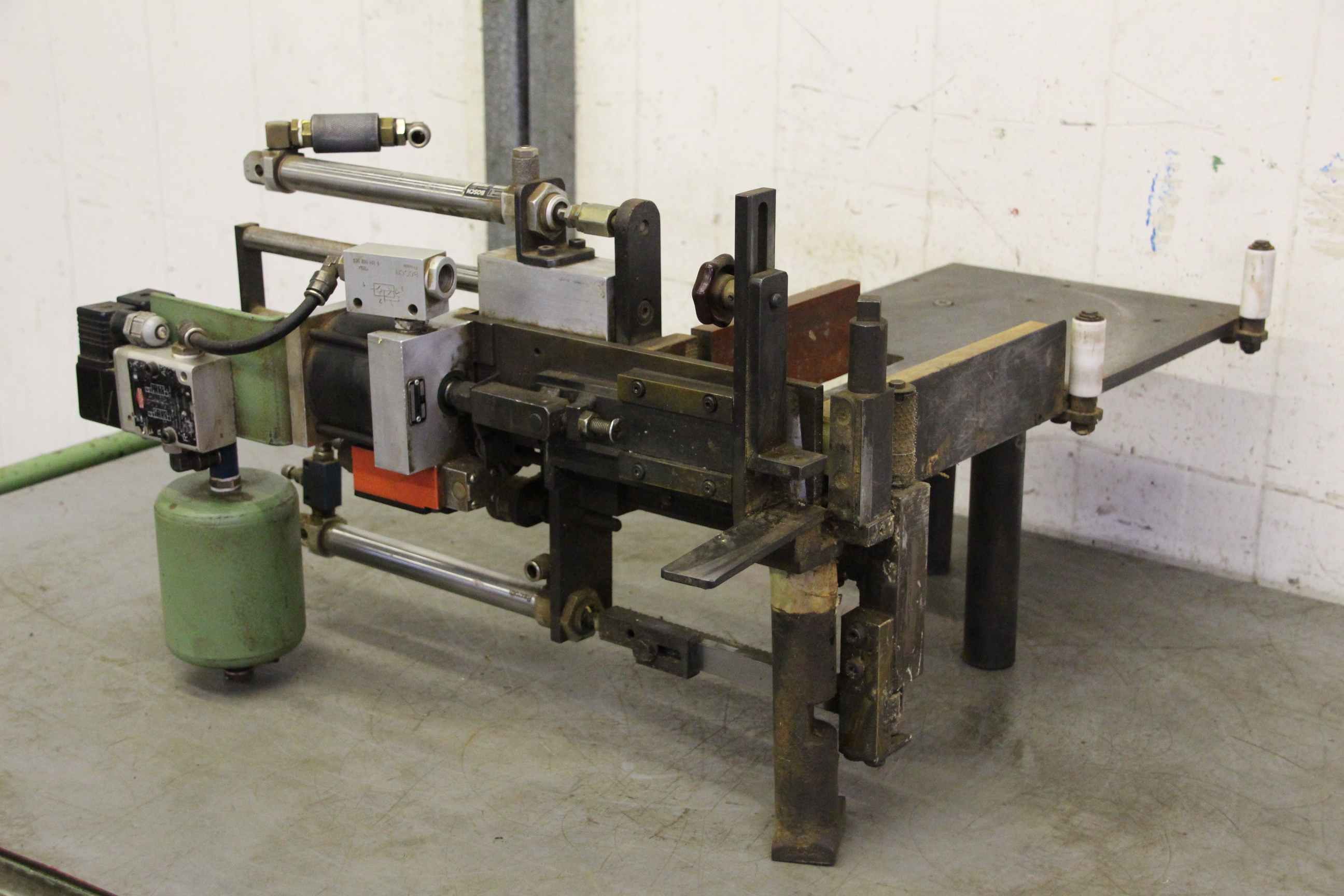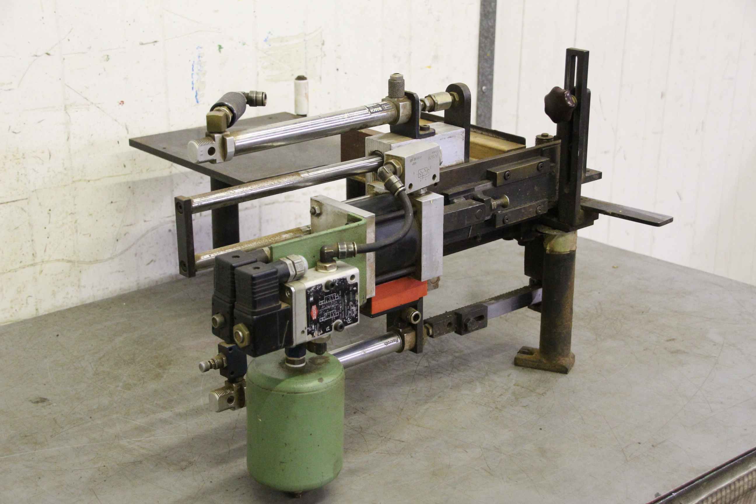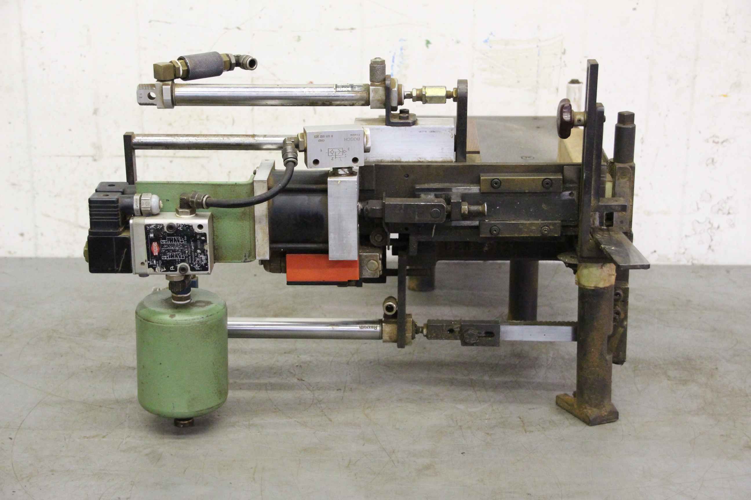 Modular unit, format processing unit, cutting unit, milling unit, profile milling unit, jointing milling unit, trimming unit, double-end profiler, edge processing machine, scoring motor, chipper motor, milling motor for edge processing machine, profile holder edge banding machine-Manufacturer: Homag, profile holder from edge banding machine BRANDT KM 35-Individual components: see photos-Dimensions: 665/540 / H375 mm-Weight: 30 kg