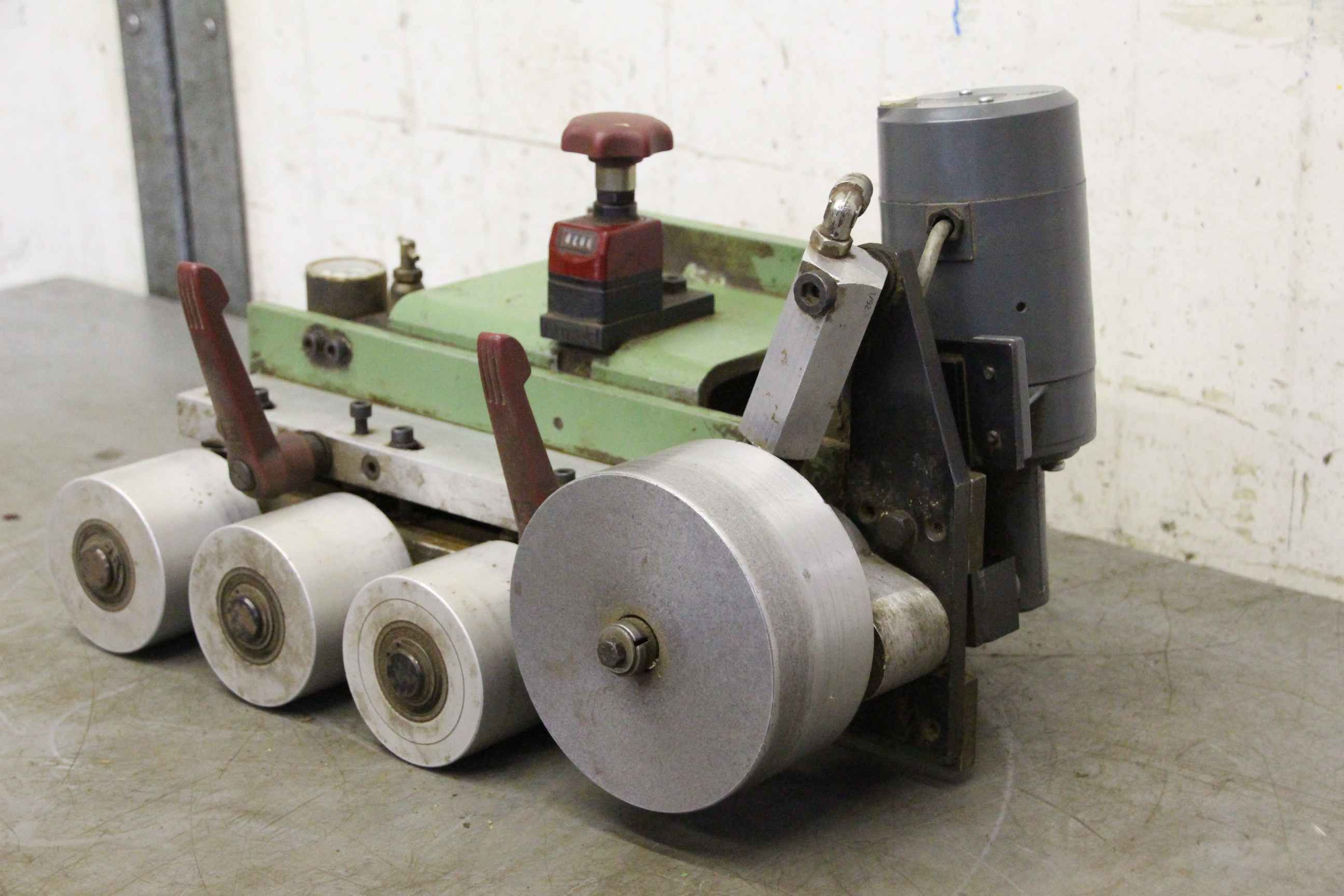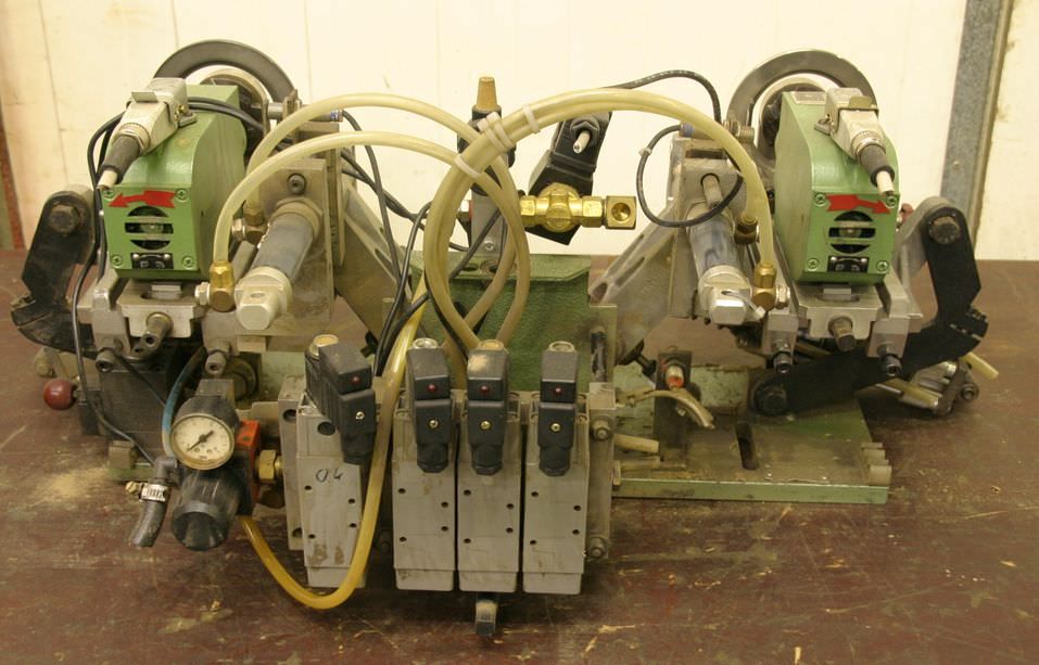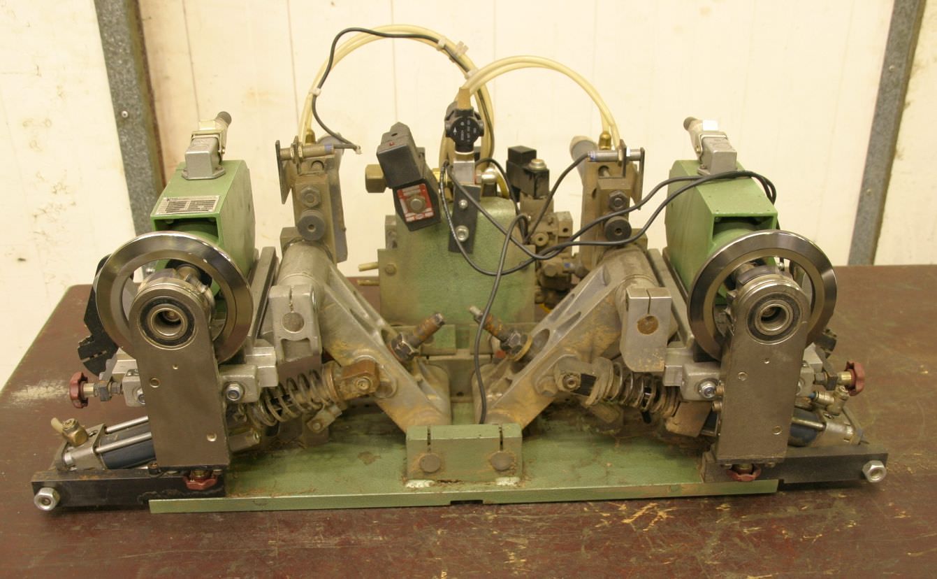 Pressure zone turret, softforming interchangeable profiles for softforming machines, double-end tenoners, edging machines, scoring motor, chipper motor, milling motor for edging machines -HOMAG softforming interchangeable profiles for softforming profiles can be quickly converted to straight edges -with heavy leadership -laterally movable -with counter -HOMAG milling unit for joint milling -with heavy dovetail guide -1x engines Perske -Motor type: -Power: 3.0/4.4 kW -Voltage: 220/380/380 volts -Frequency: 50/100 Hz -Speed: 2880/5880 rpm -Other engines with other services in stock for an additional charge -Dimensions: 1800/1400/H1300 mm -Weight: 712 kg