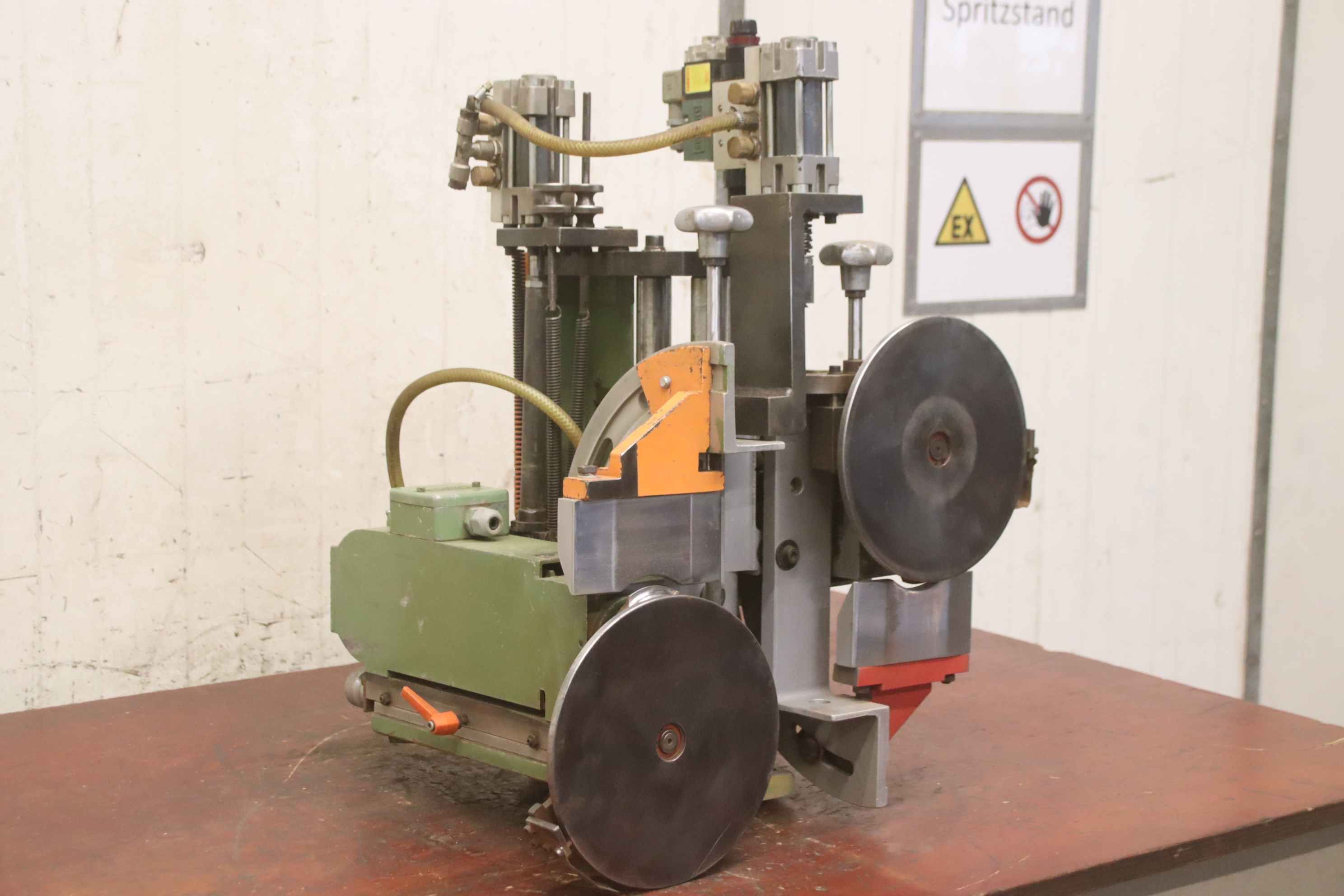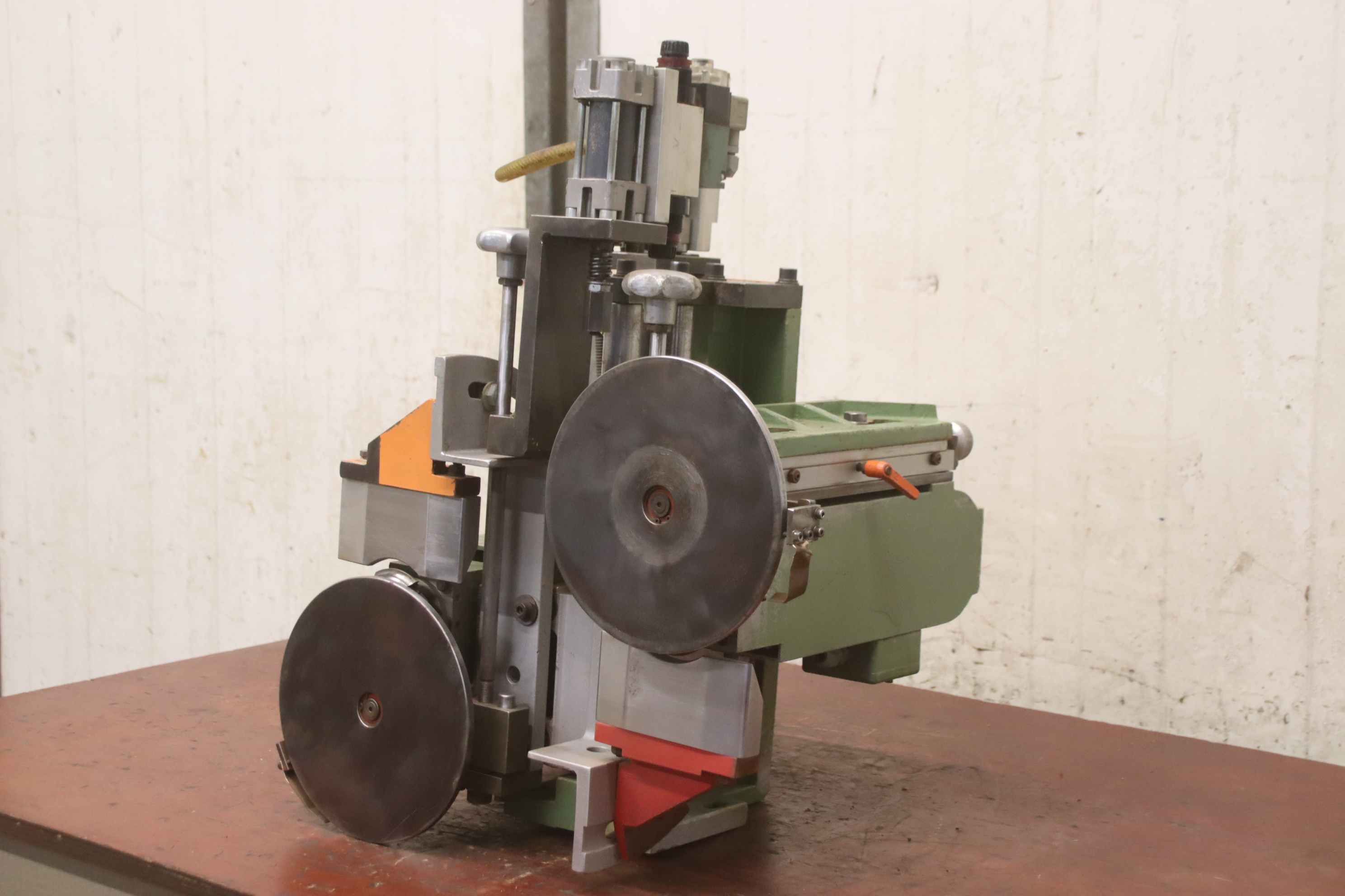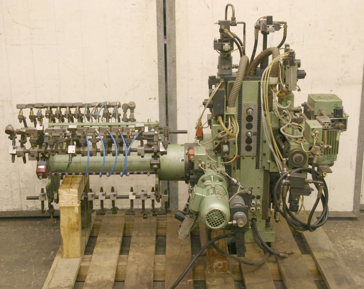 Pressure zone turret, softforming interchangeable profiles for softforming machines, double-end tenoners, edging machines, scoring motor, chipper motor, milling motor for edging machines -HOMAG softforming interchangeable profiles for softforming profiles can be quickly converted to straight edges -with heavy leadership -laterally movable -with counter -HOMAG milling unit for joint milling -with heavy dovetail guide -1x engines Perske -Motor type: -Power: 3.0/4.4 kW -Voltage: 220/380/380 volts -Frequency: 50/100 Hz -Speed: 2880/5880 rpm -Other engines with other services in stock for an additional charge -Dimensions: 1800/1400/H1300 mm -Weight: 712 kg