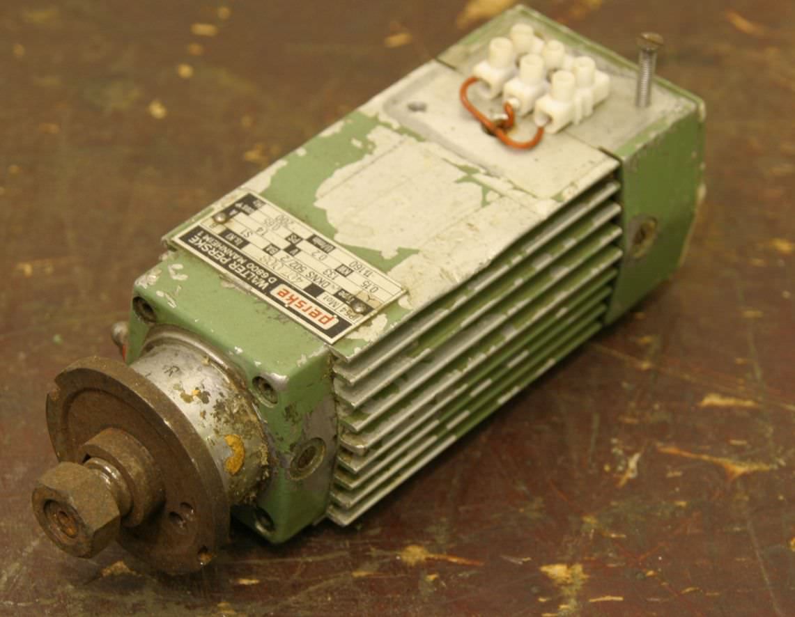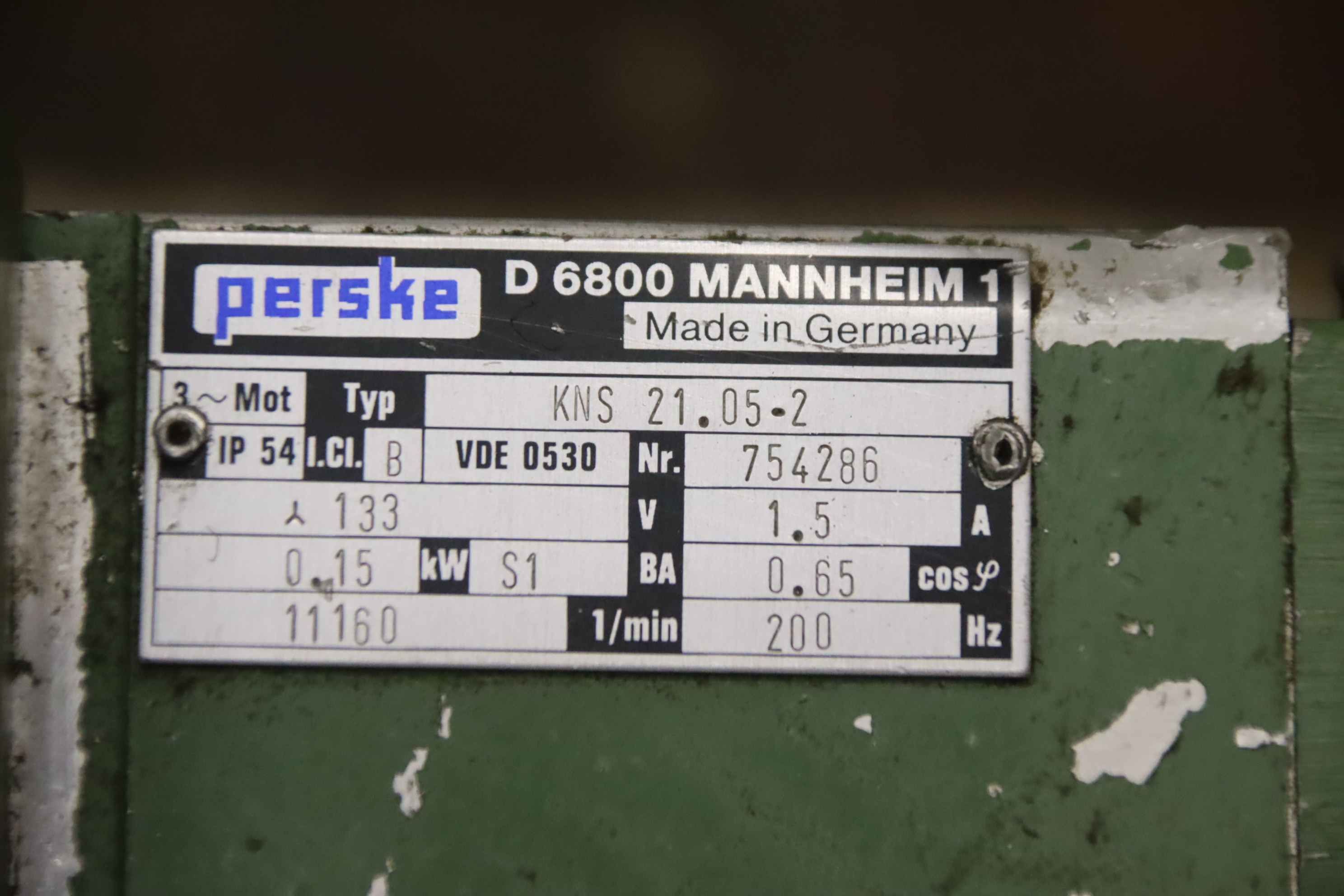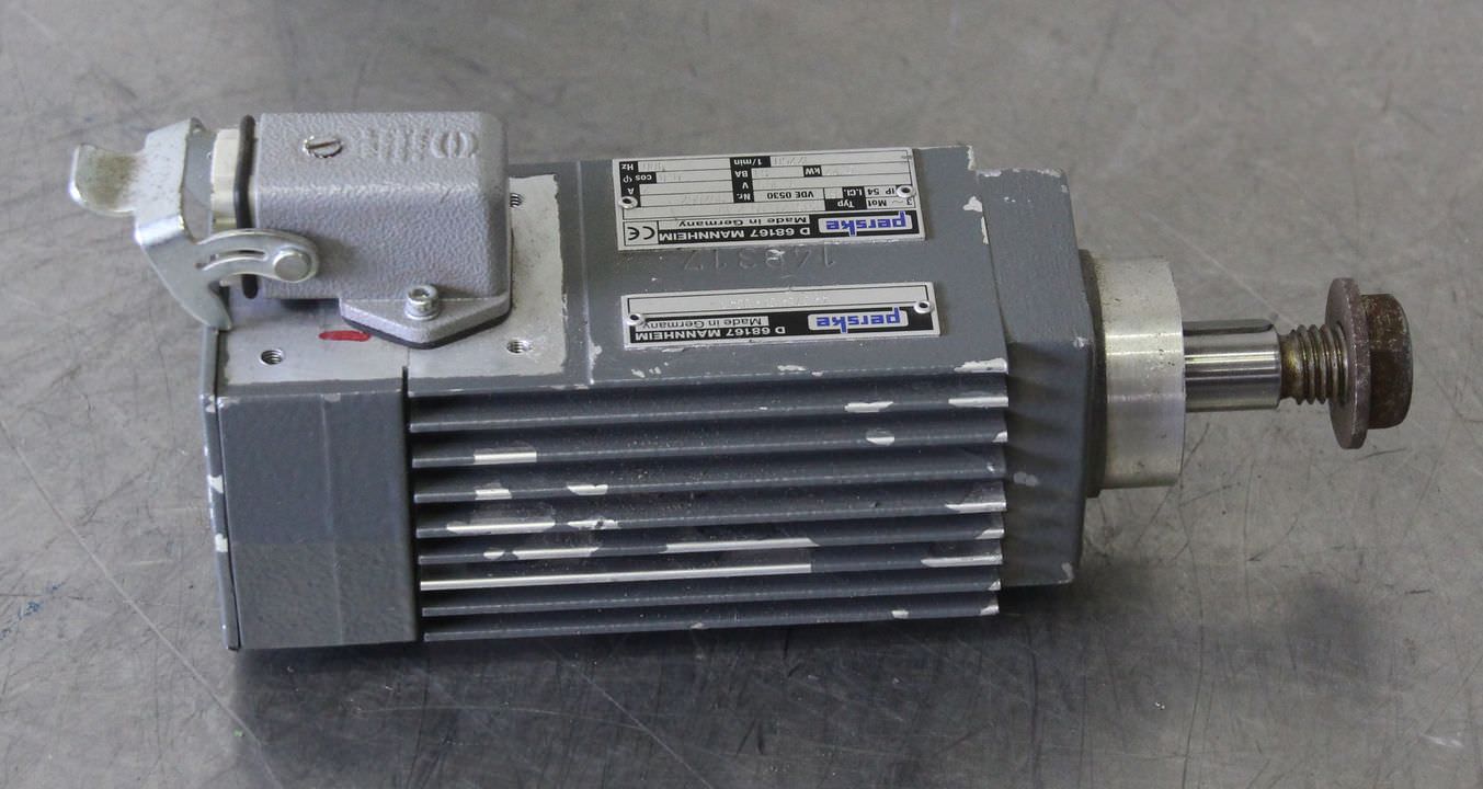 Double-end tenoner, edge processing machine, scoring motor, chipper motor, milling motor, spindle motor-Manufacturer: Perske, milling motor type KNS 21.05-2 with bracket-Power: 0,15 kW 11160 U/min -Voltage: 133 V / 200 Hz-Mounting shaft: Ø 15 x 15 mm-Saw blade. Ø 140 mm-Number: 2x milling motor available-Price: per piece-Dimensions: 260/200/H200 mm-Weight: 4.8 kg/piece