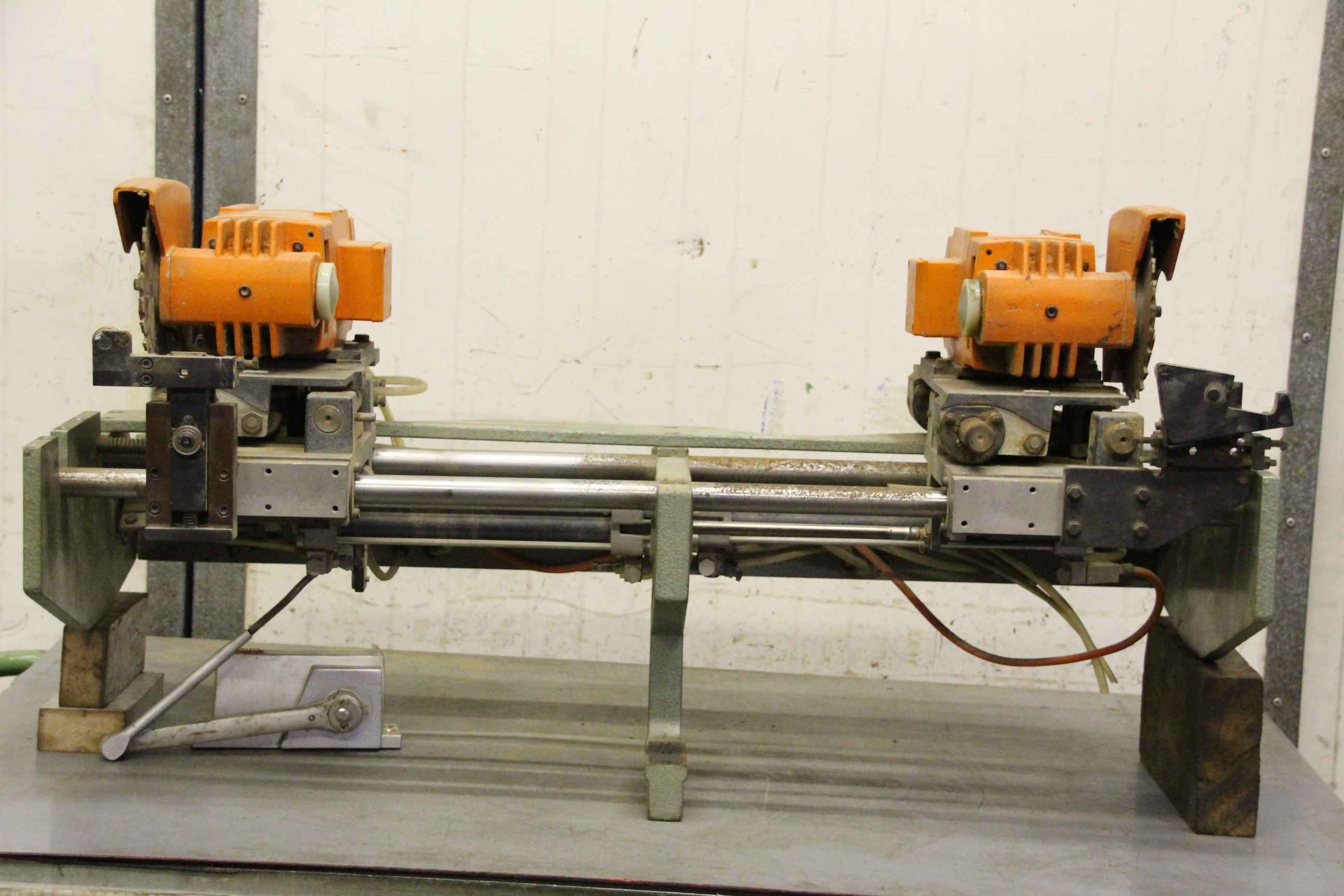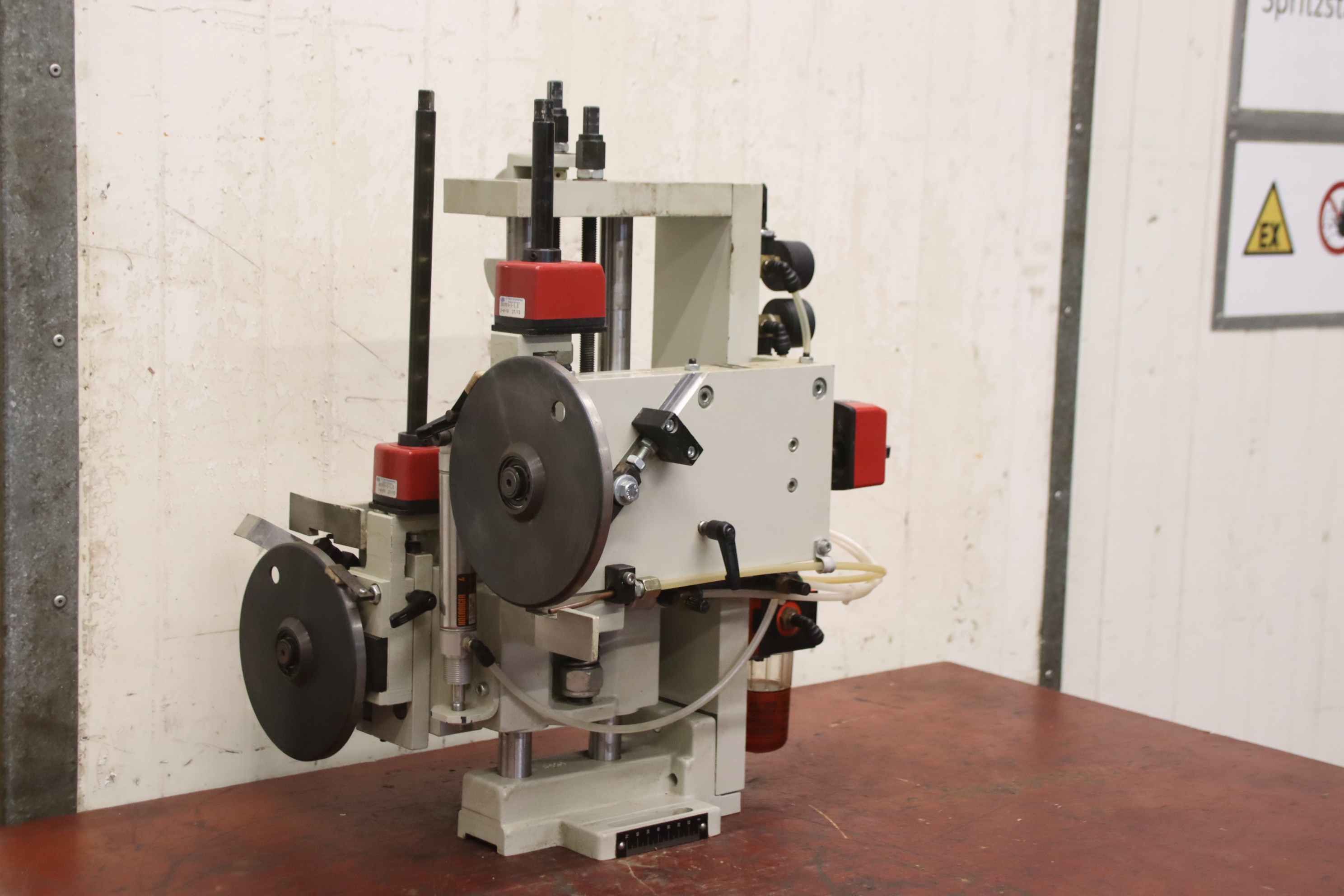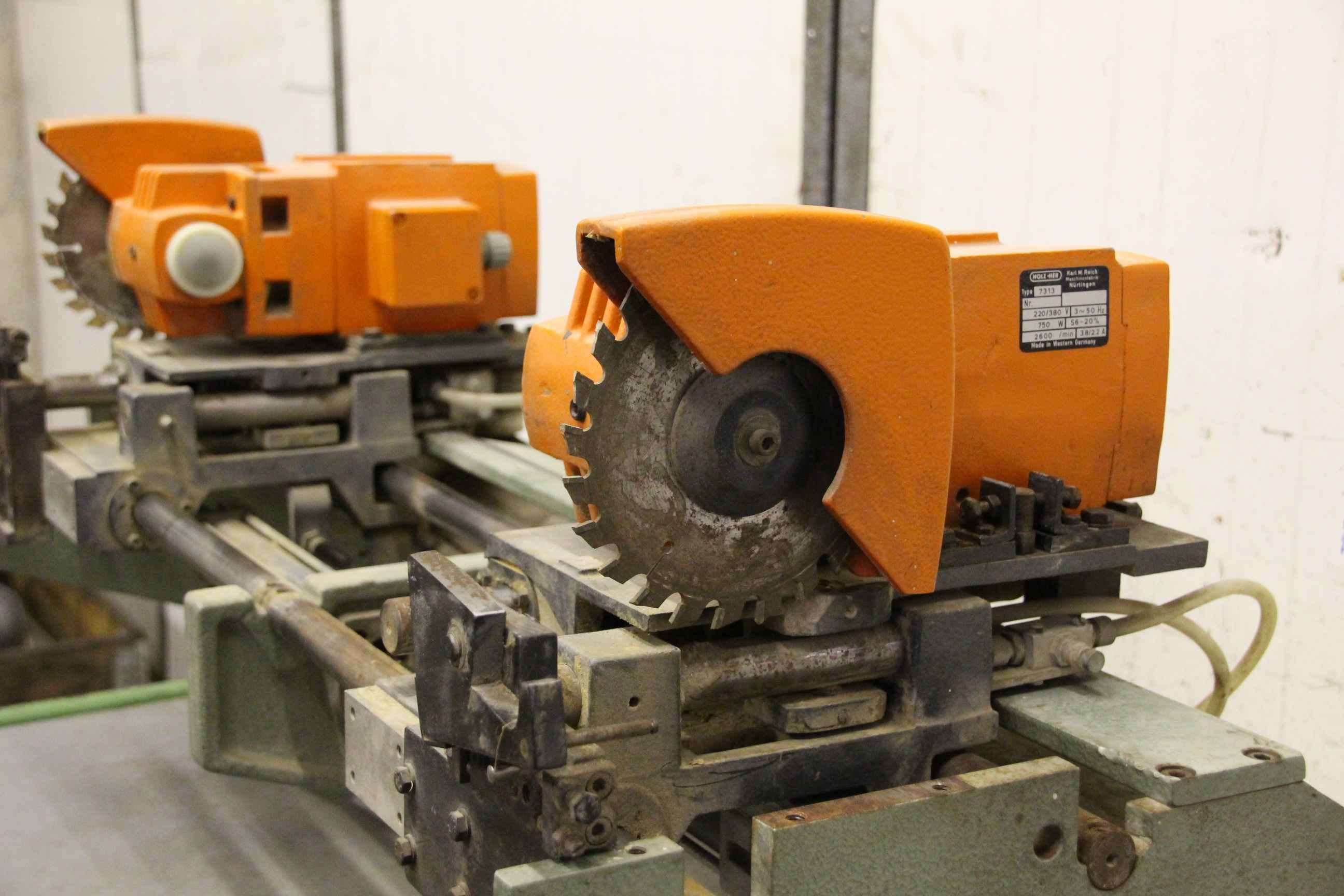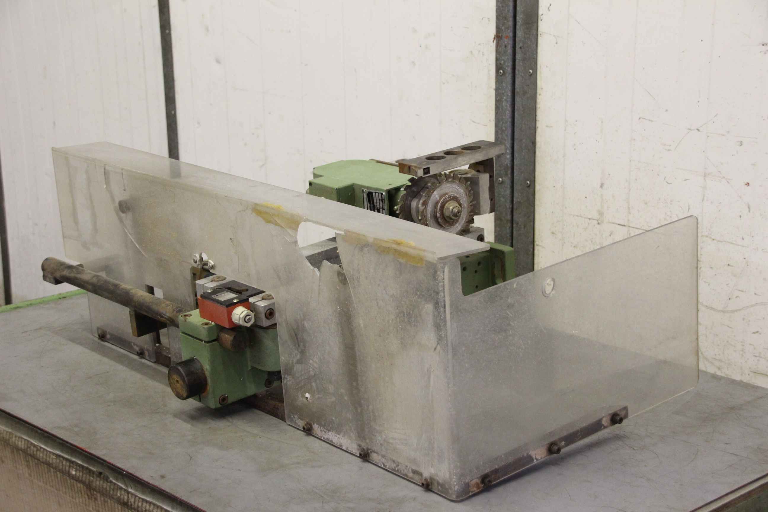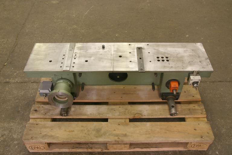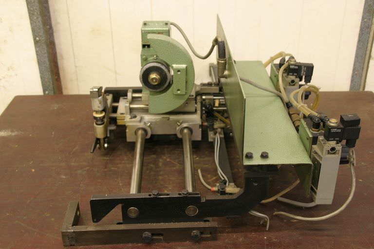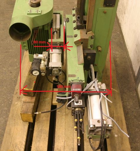 Unit construction kit, format processing unit, cutting unit, milling unit, profile milling unit, jointing milling unit, trimming unit, double-end profiler, edge processing machine, scoring motor, chipper motor, milling motor for edge processing machine-Sale: Handover in the current condition as seen-Case: slight damage, see photos-Trimming unit: for trimming the protruding edges on the front and rear edge-Adjustment range: 400 to 840 mm-Clamping: pneumatic-Motors: Holz-Her 750 W / 2600 rpm-Saw blade: Ø 160 mm-Dimensions: 1010/450 / H540 mm-Weight: 94 kg