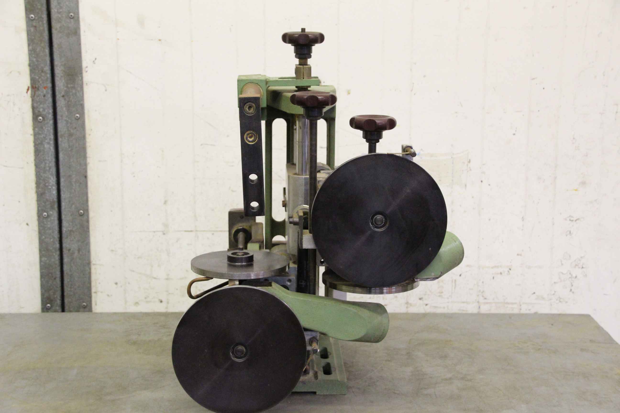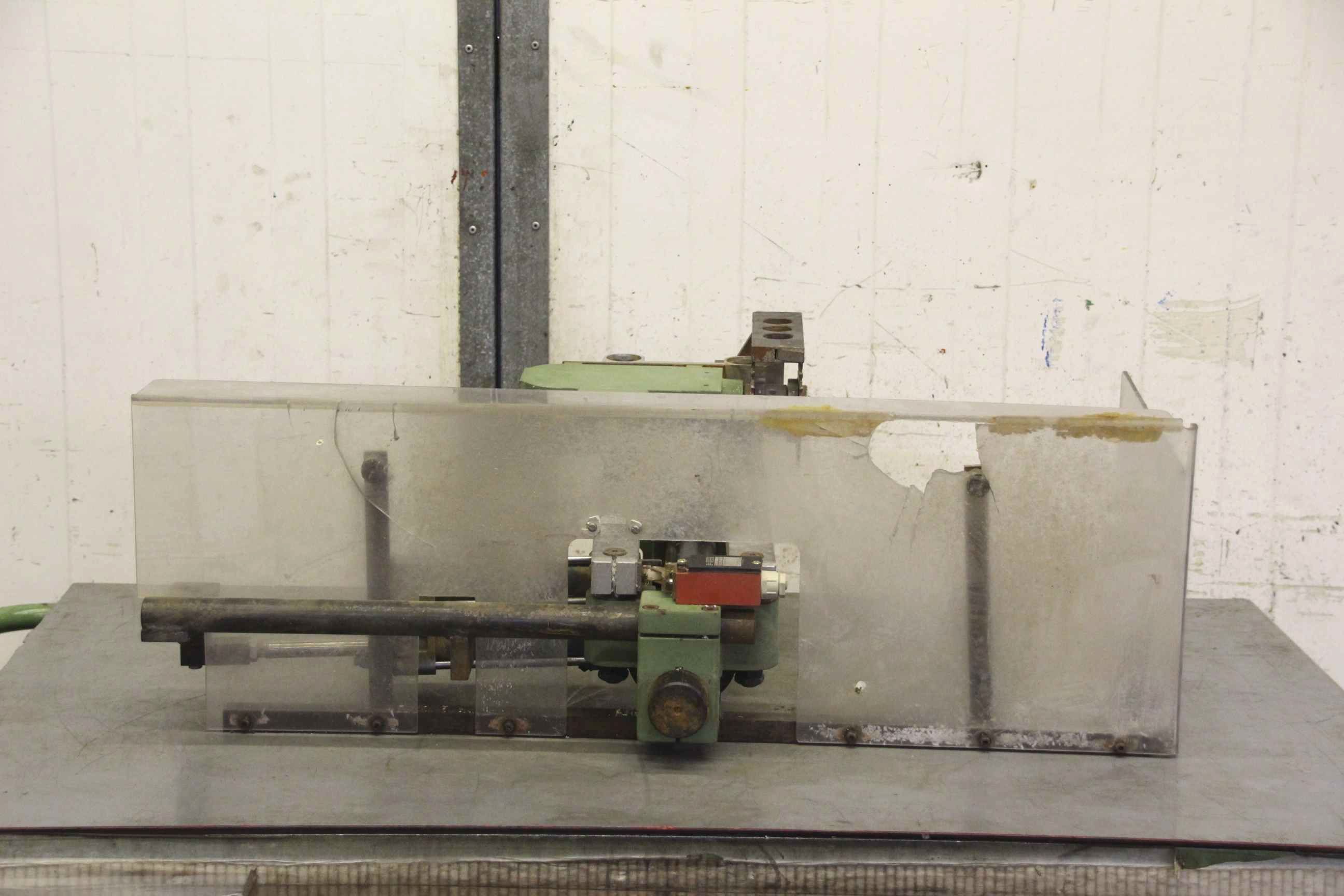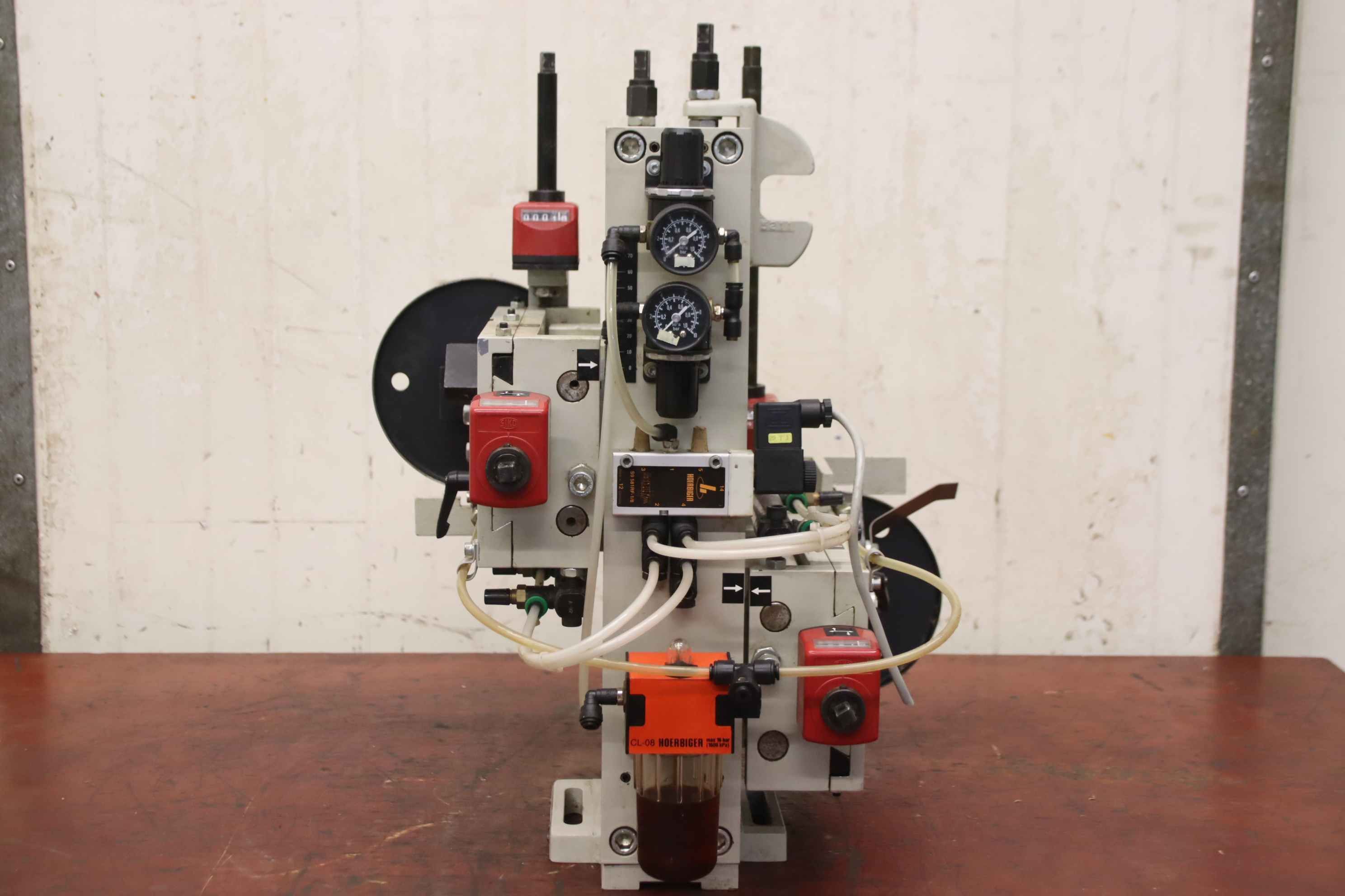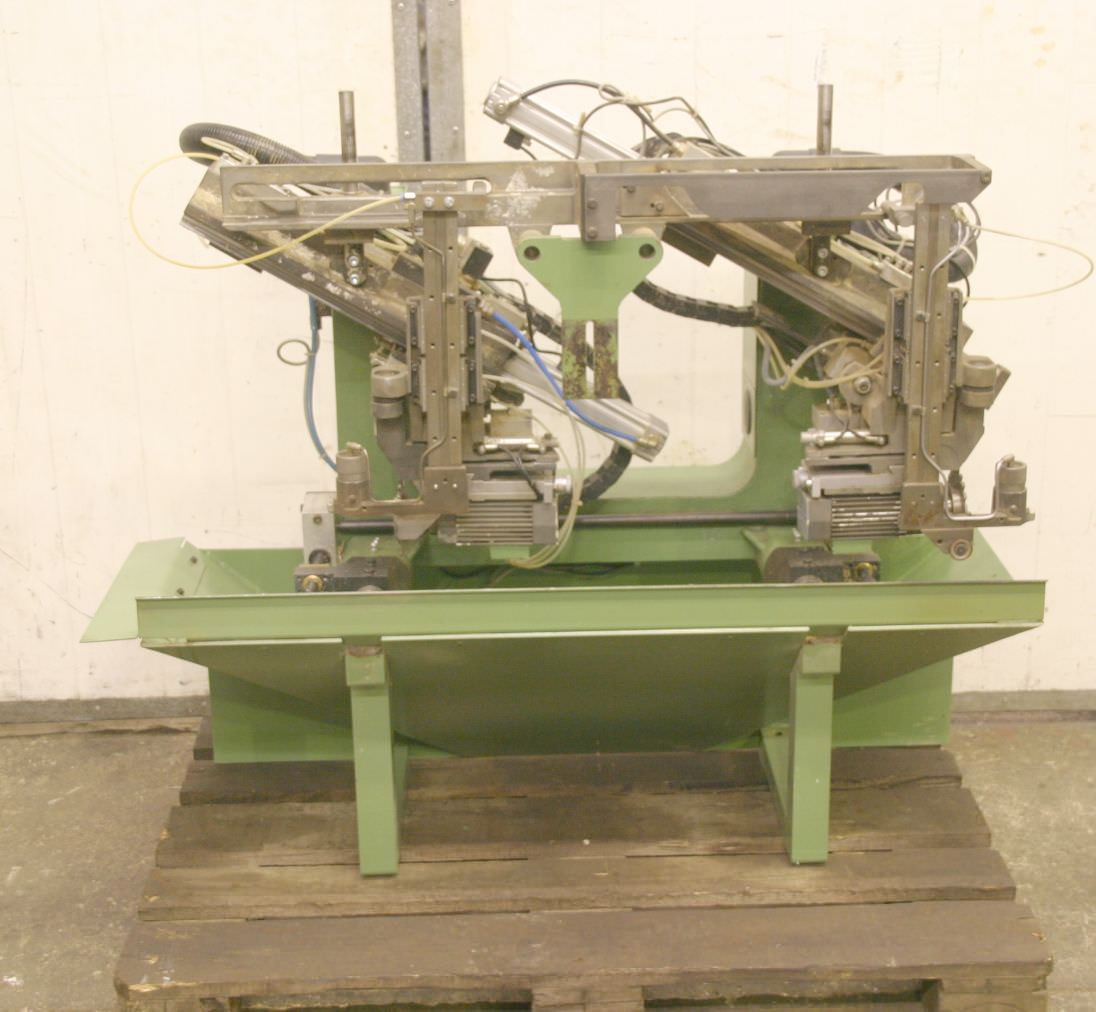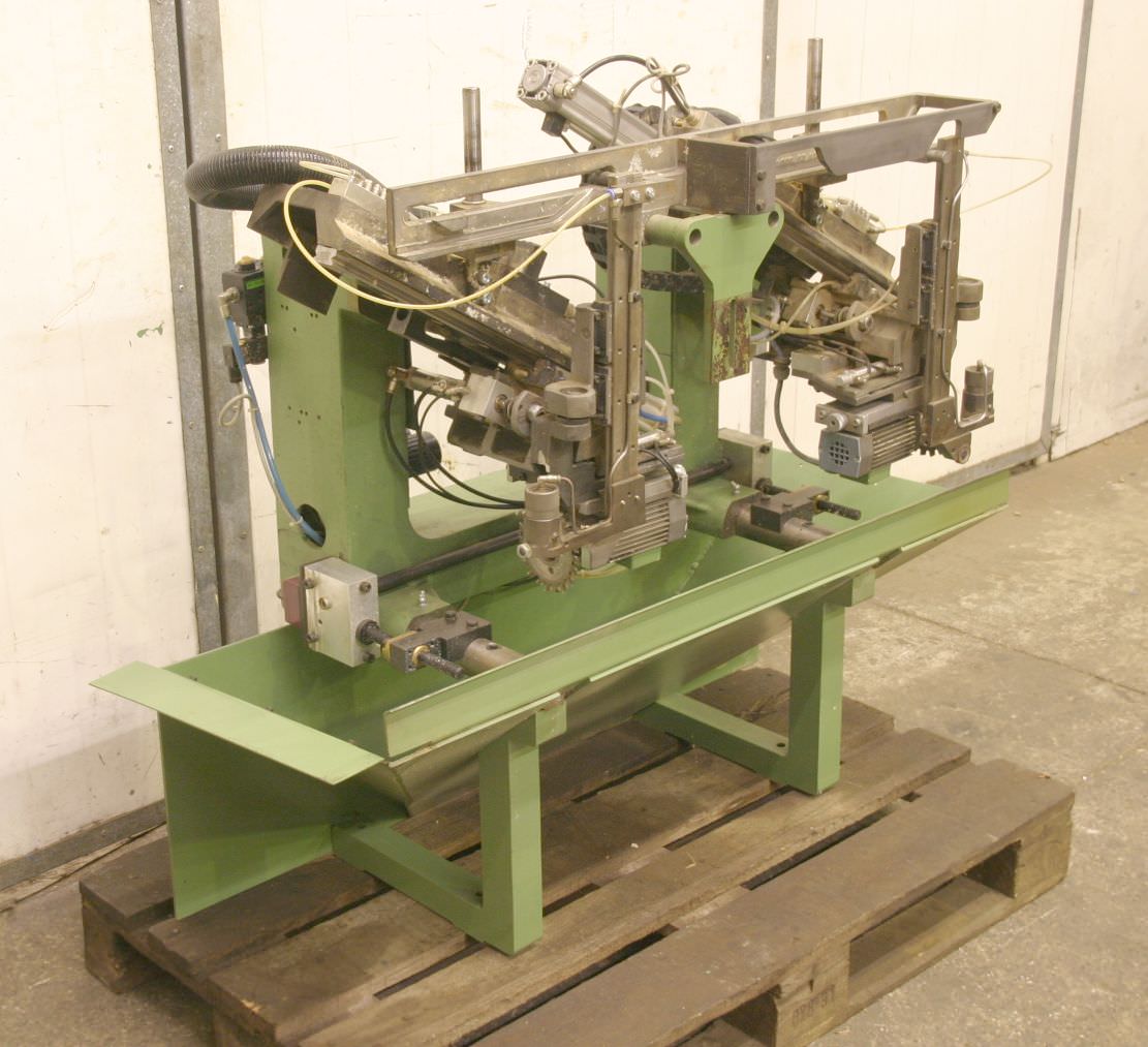 Unit construction kit, format processing unit, cutting unit, milling unit, profile milling unit, jointing milling unit, trimming unit, double-end profiler, edge processing machine, scoring motor, chipper motor, milling motor for edge processing machine-Sale: Handover in the current condition as seen-Case: slight damage, see photos-Trimming unit: for trimming the protruding edges on the front and rear edge-Adjustment range: 400 to 840 mm-Clamping: pneumatic-Motors: Holz-Her 750 W / 2600 rpm-Saw blade: Ø 160 mm-Dimensions: 1010/450 / H540 mm-Weight: 94 kg