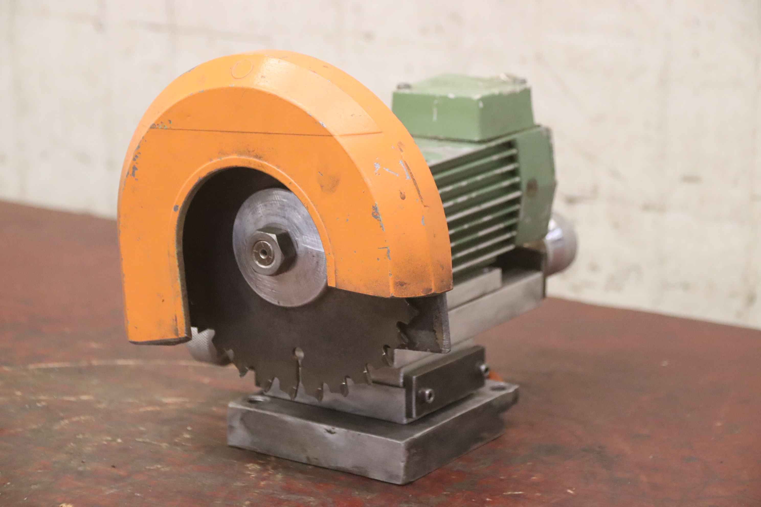 Unit construction kit, format processing unit, cutting unit, milling unit, profile milling unit, jointing milling unit, trimming unit, double-end profiler, edge processing machine, scoring motor, chipper motor, milling motor for edge processing machine-Manufacturer: Hemag, saw unit can be swiveled by 30 °-Saw blade: max. Ø 350 x 30 mm-Motor: Perske type DKNS 120/2 3.0 kW / 2830 rpm-Protection class: IP 54-Dimensions: 950/780 / H630 mm-Weight: 115 kg