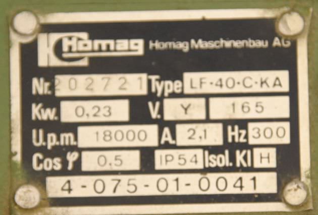 Double-end tenoner, edge processing machine, scoring motor, chipper motor, spindle motor, milling motor -Power: 0.15 kW at 11160 rpm at 200 Hz -Voltage: 133 volts -Receiving shaft: Ø 15 mm -Tool: Ø 150 x 3.0 mm -Dimensions: 200/85/H70 mm -Weight: 2.7 kg
