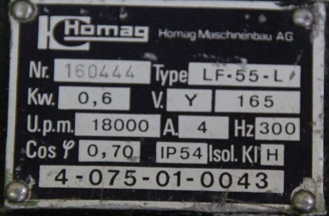Unit construction kit, format processing unit, cutting unit, milling unit, profile milling unit, jointing milling unit, trimming unit, double-end profiler, edge processing machine, scoring motor, chipper motor, milling motor for edge processing machine-Sale: Handover in the current condition as seen-Protective cover: damage see photos-Manufacturer: Homag, milling unit from edge banding machine BRANDT KS 25-Motor: Homag 0.75 kW / 12000 rpm-Voltage: 220V / 200 Hz-Pneumatic cylinder: Bosch-Dimensions: 900/570 / H325 mm-Weight: 44 kg