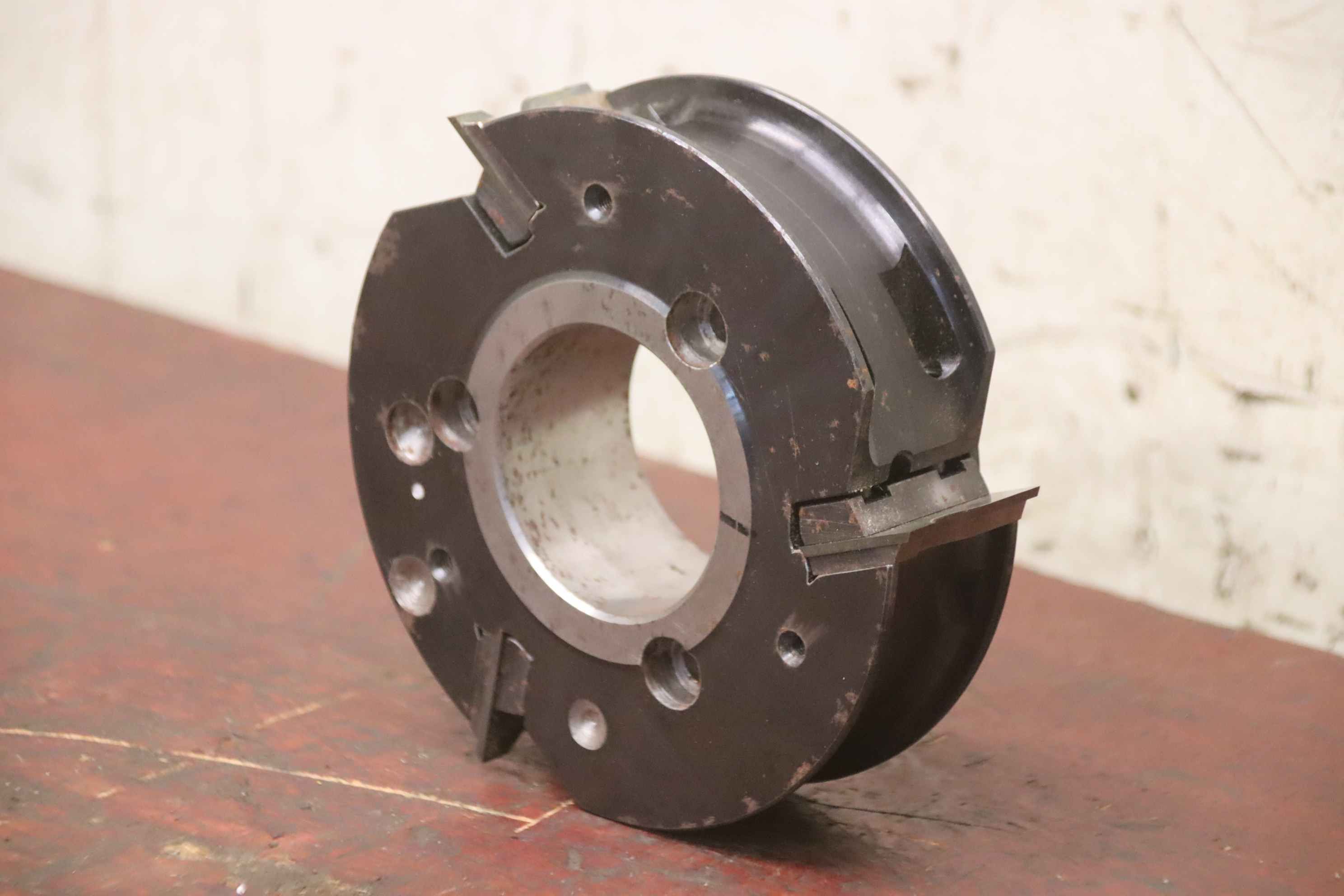 wood milling cutter, milling head, milling tool, wood milling cutter, profile milling cutter-Wood cutter: Ø 160 mm-Hole: Ø 60 mm, bolt circle Ø 85 x 9 mm-Number: 2x cutters available-Price: per piece-Dimensions: Ø 160 x 40 mm-Weight: 3.6 kg/piece