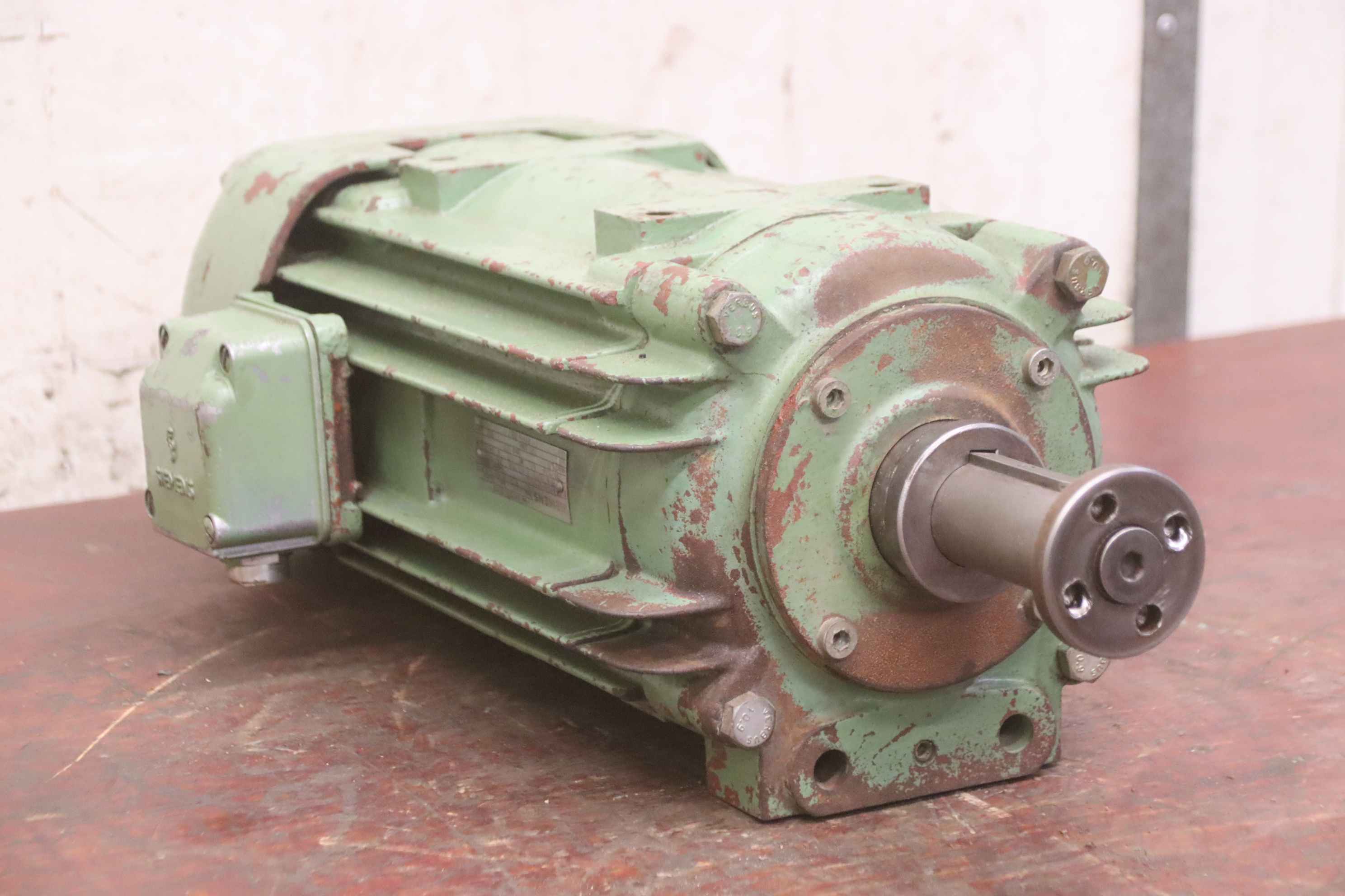 Double-end tenoner, edge processing machine, scoring motor, chipper motor, spindle motor, milling motor -Motor: 3 kW 1420 rpm -Shaft mounting: Ø 30 mm -Quantity: 1 available -Dimensions: 670/290/H190 mm -Weight: 57 kg
