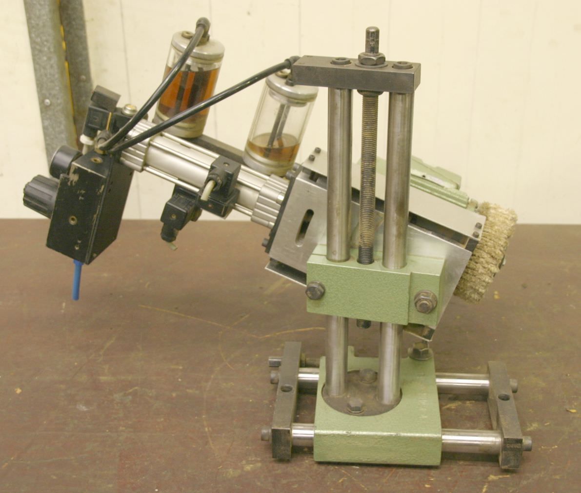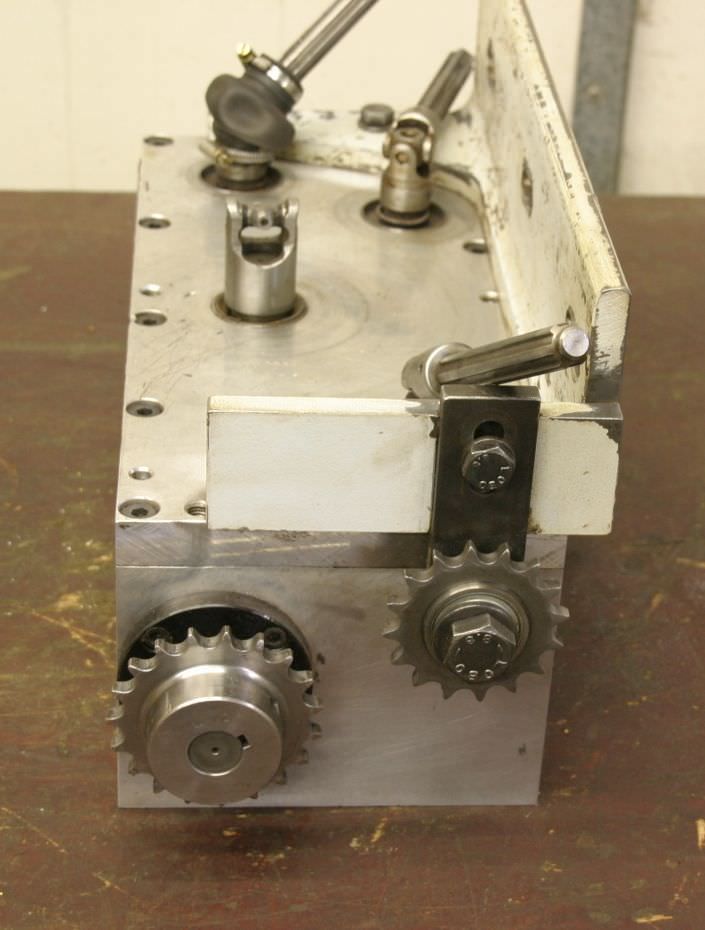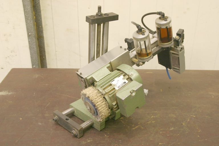 Gluing unit, gluing part, gluing head, heating basin for edge banding, edge banding machine-Manufacturer: Brandt, aggregate from edge banding machine BRANDT KS 25-Engine. Groschopp 0.25 kW / 2800 rpm-Gearbox: i 12/233 rpm-Dimension total. 560/340/265 mm-Weight: 28 kg
