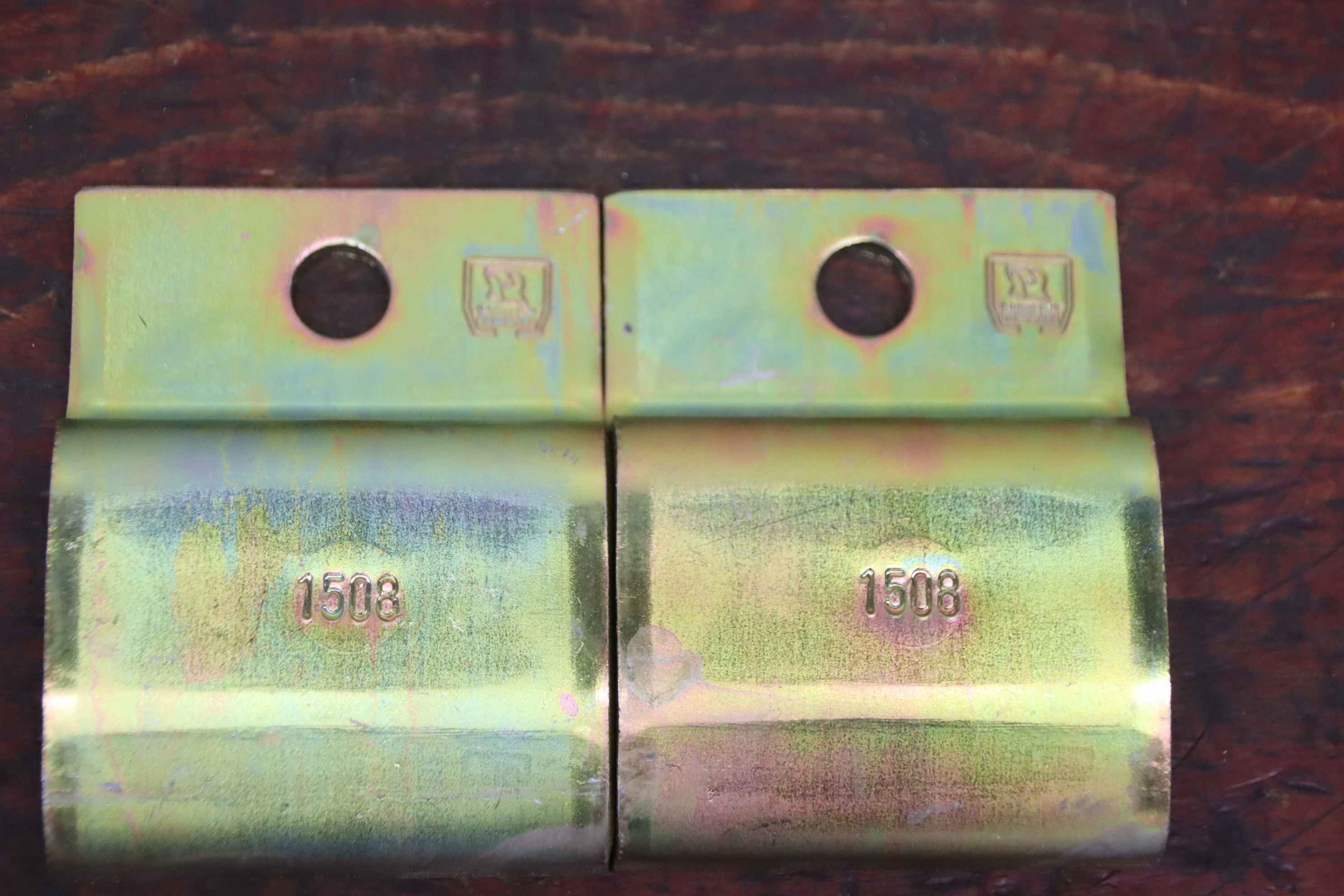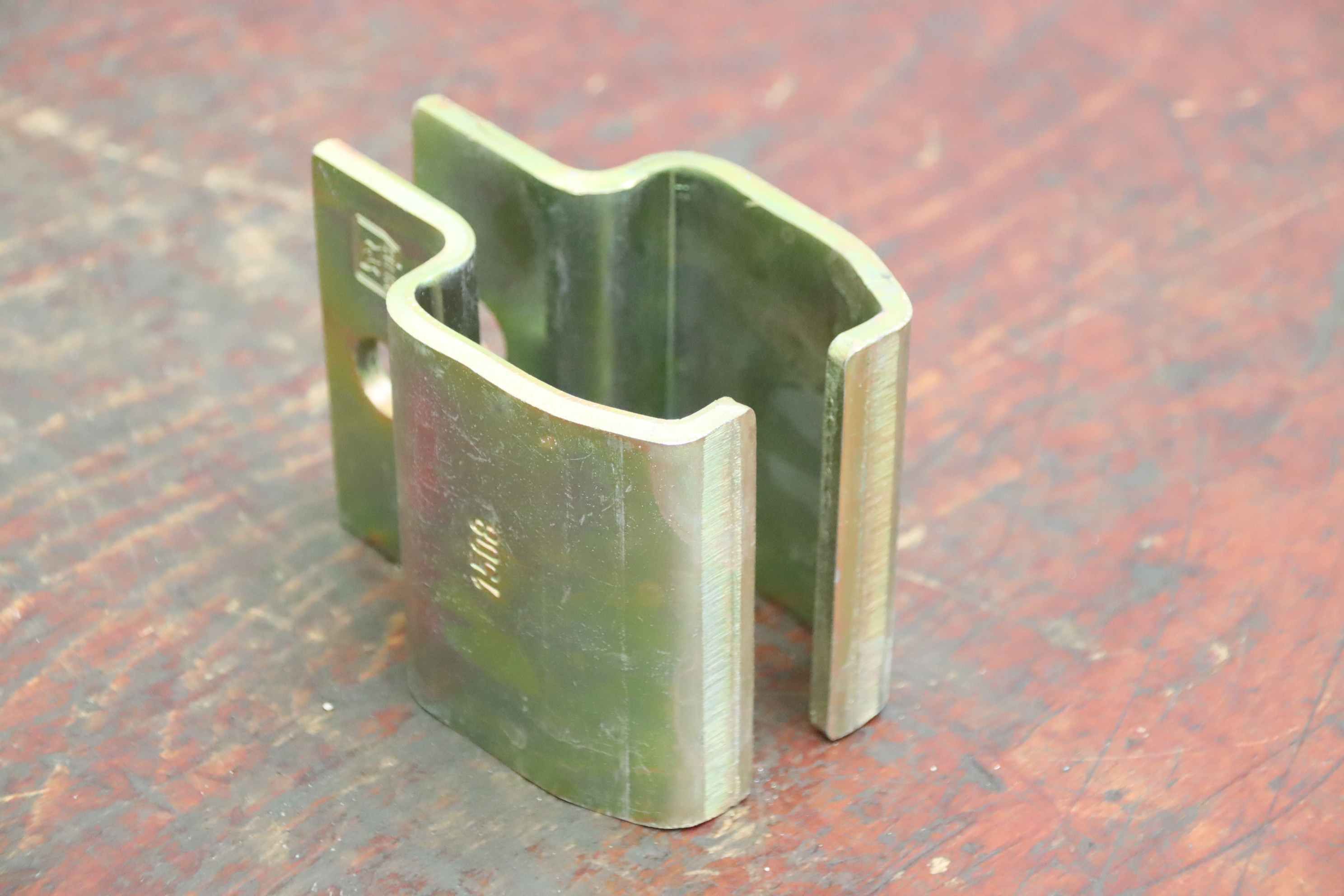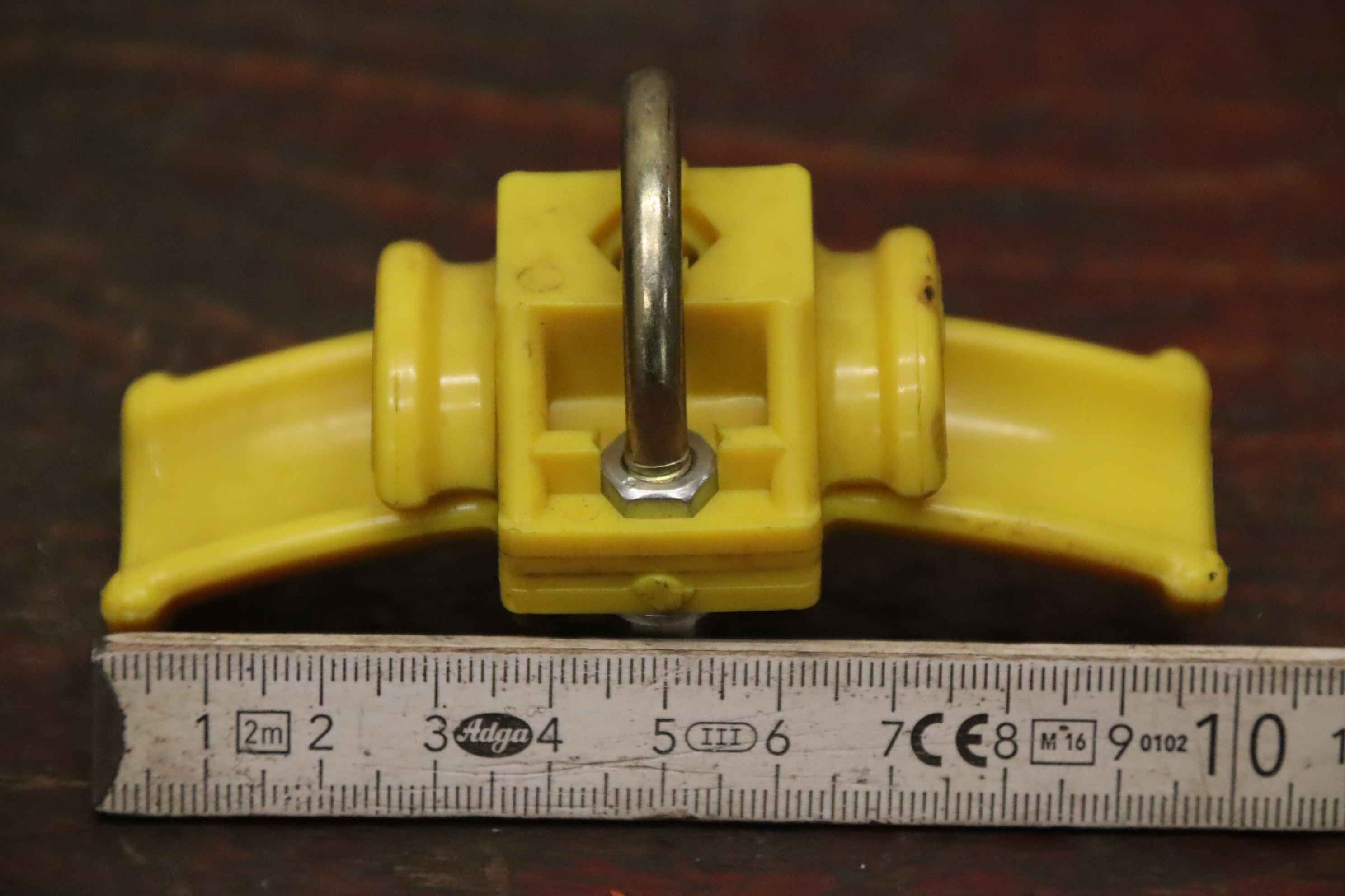 Suspension clamp, helmet rail holder, helmet rail, running rail, rail holder -Manufacturer: Helm, suspension clamp, rail holder, galvanized yellow -Type: 1508 -Dimensions: see photos -Quantity: 30x suspension clamps available -Price: per piece / Minimum order 2 pieces -Dimensions: 90/70/H120 mm -Weight: 1.2 kg/pc.