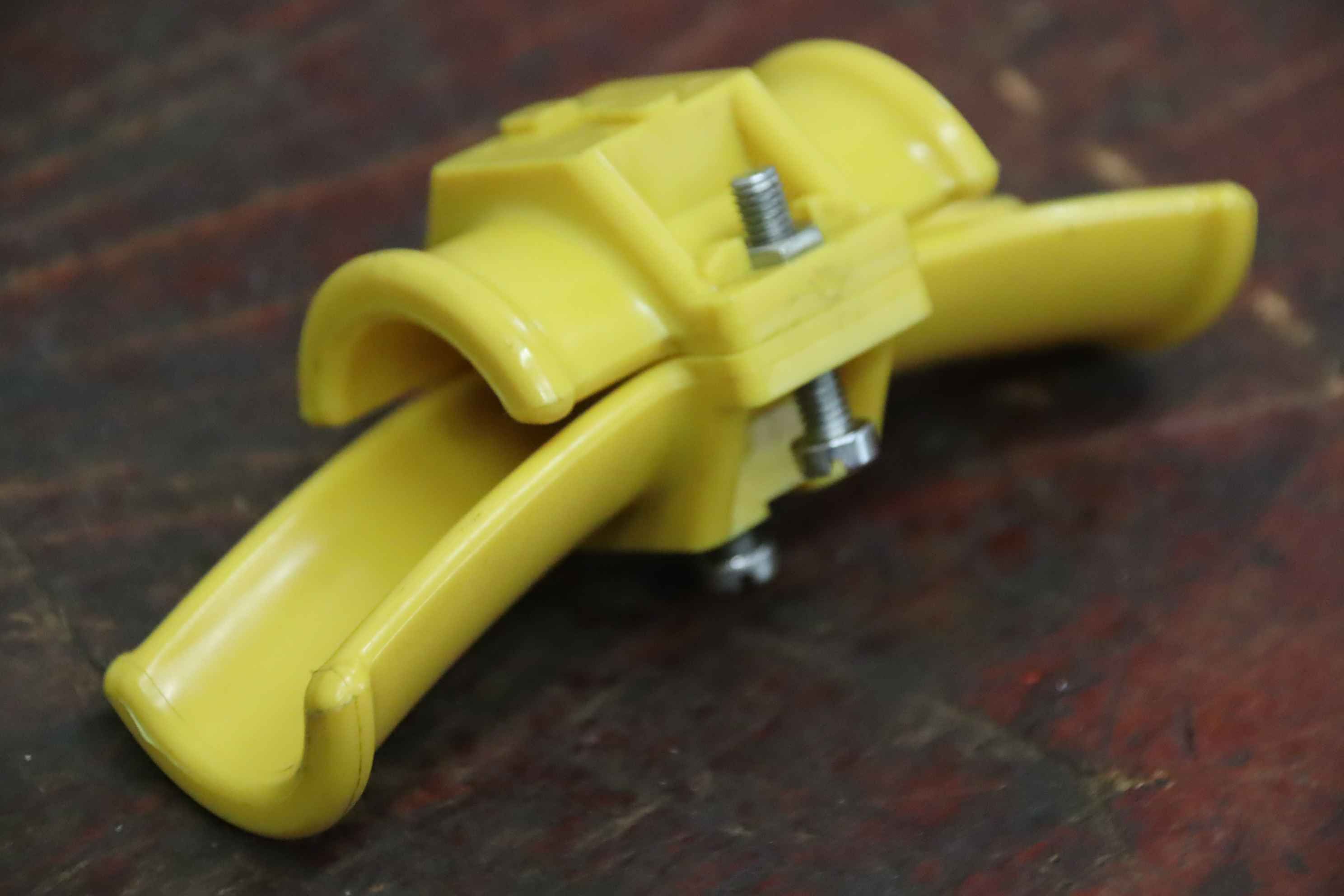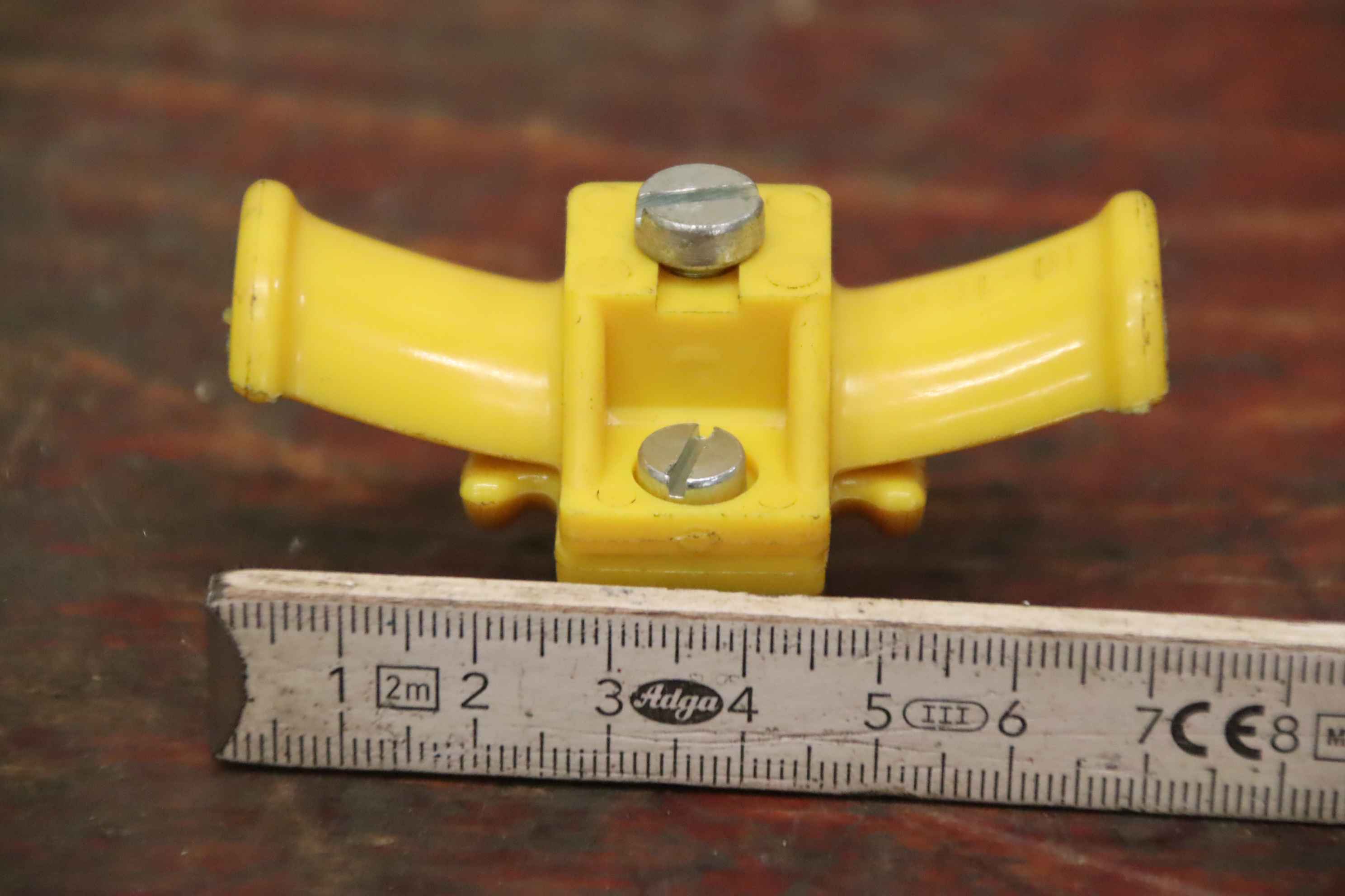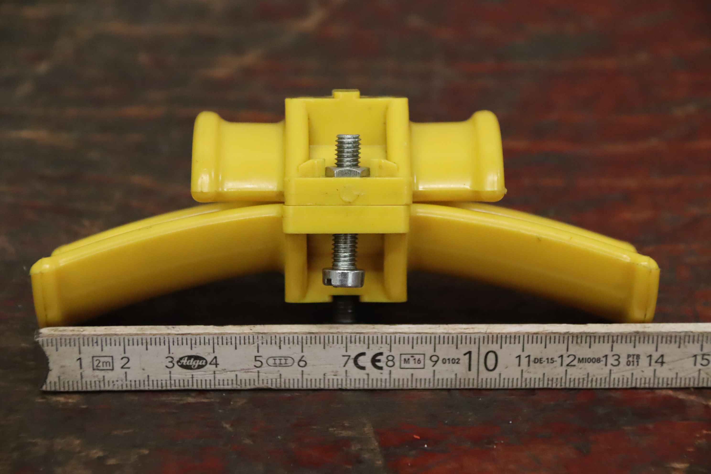 Suspension clamp, helmet rail holder, helmet rail, running rail, rail holder -Manufacturer: Helm, suspension clamp, rail holder, galvanized yellow -Type: 1508 -Dimensions: see photos -Quantity: 30x suspension clamps available -Price: per piece / Minimum order 2 pieces -Dimensions: 90/70/H120 mm -Weight: 1.2 kg/pc.