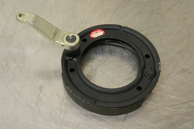 Brake shoe set, wheel brake, brake kit -Brakes: from GSL (German Standard Lift) aerial work platforms - universally applicable: can be used -with: return spring and brake lever -Number: 112 brakes available Price: per piece -Dimensions: 280/200/H110 mm -Weight: 2.2 kg/piece
