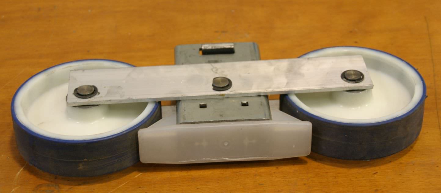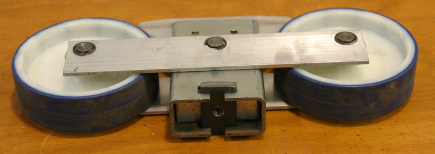 Transport rollers, wheels, casters, carrying rollers -comes from a grandstand complex -Roller diameter: 125 mm -Number: 92 sets of rolls available -Price: per piece -Dimensions: 355/135/H50 mm -Weight: 2 kg -Unfortunately, no information is available regarding load-bearing capacity.
