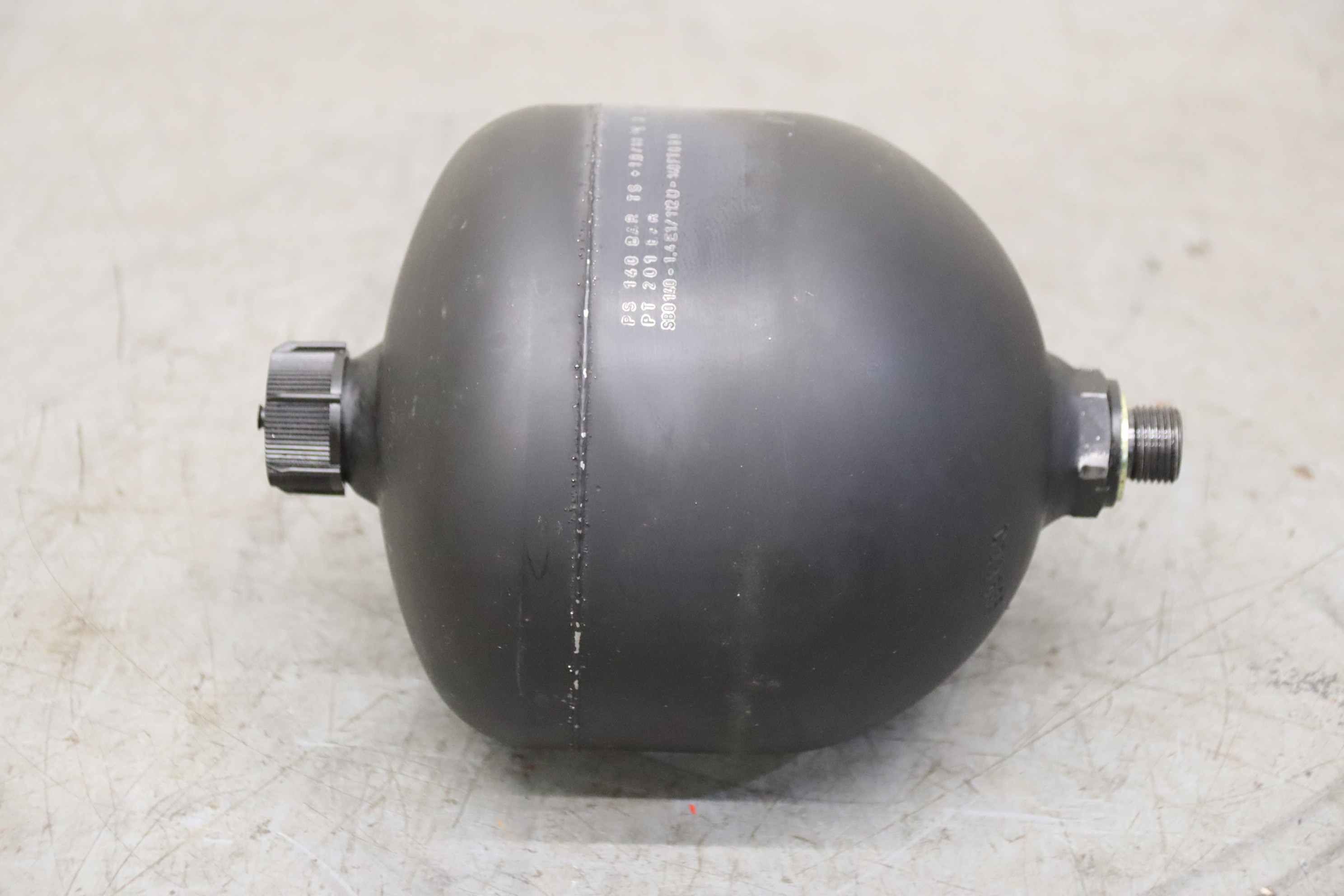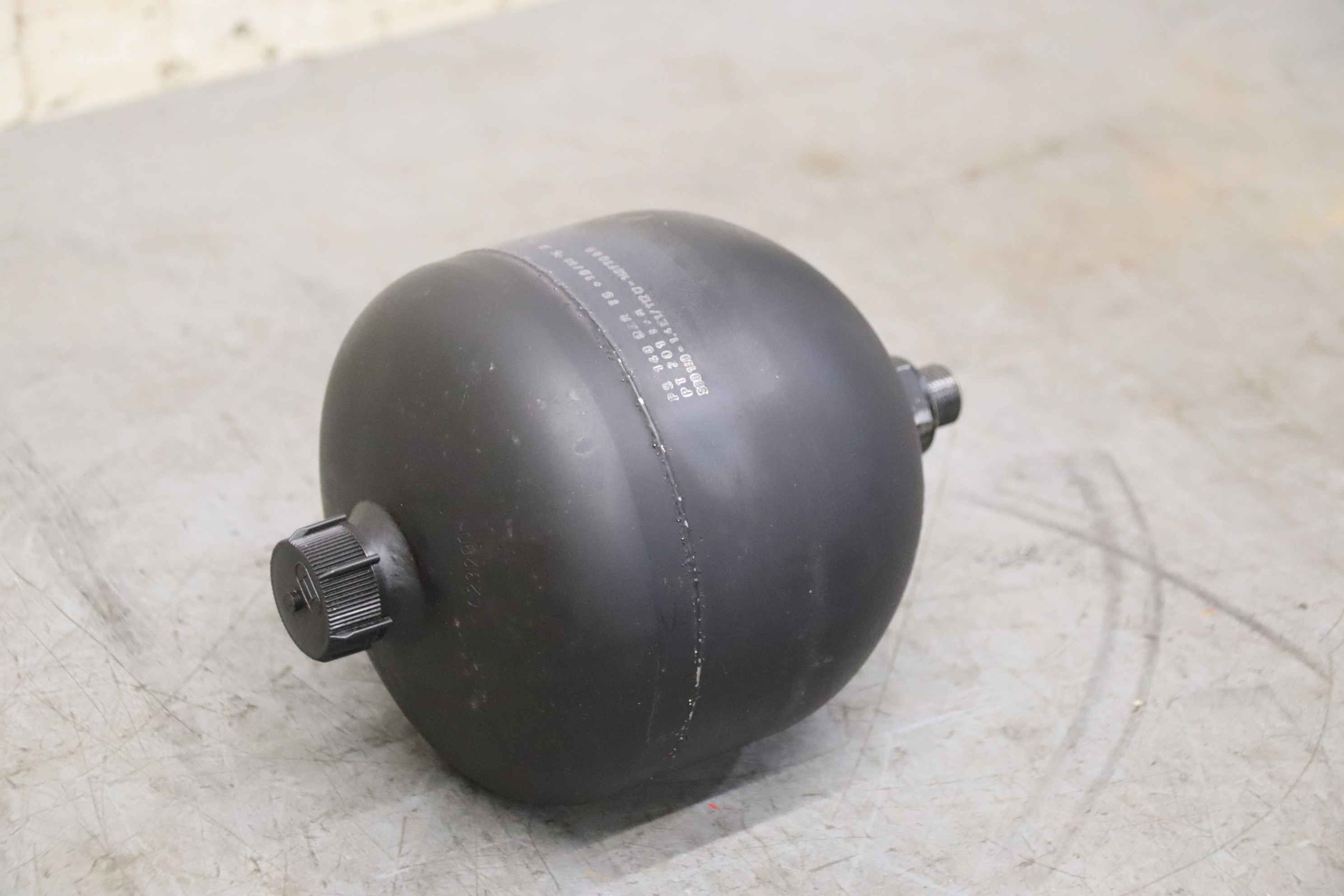 Pressure reducer, pressure regulator, bladder accumulator, high pressure bladder accumulator, hydraulic accumulator, pressure accumulator, membrane accumulator-Manufacturer: Hydac, pressure accumulator from CNC machining center MAHO MH 800C-Type: SBO140-1.4E1/112U-140FT080-Operating pressure: max. 140 bar-Quantity: 2x pressure storage available-Price per piece-Dimensions: Ø 145 x 205 mm-Weight: 3.7 kg