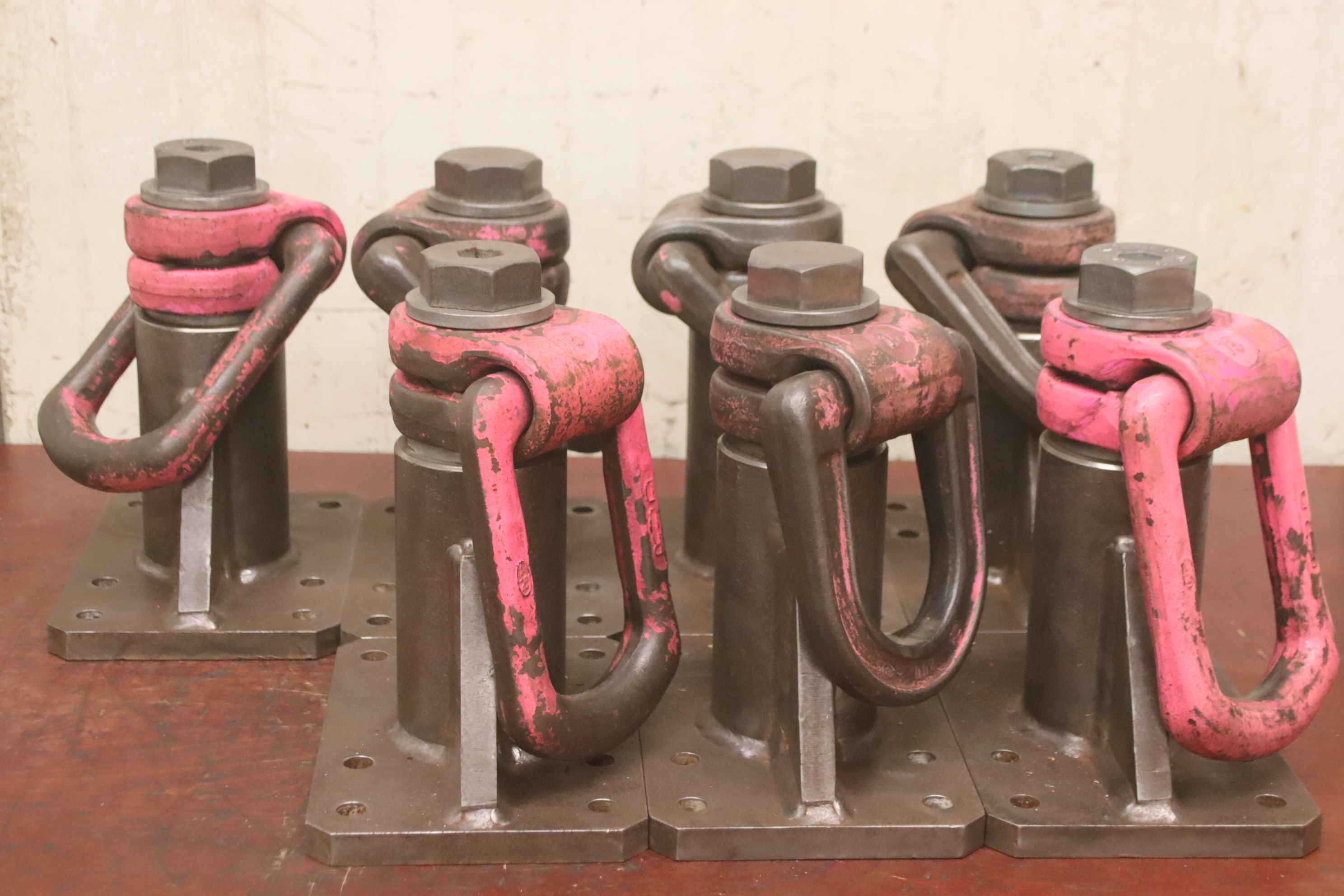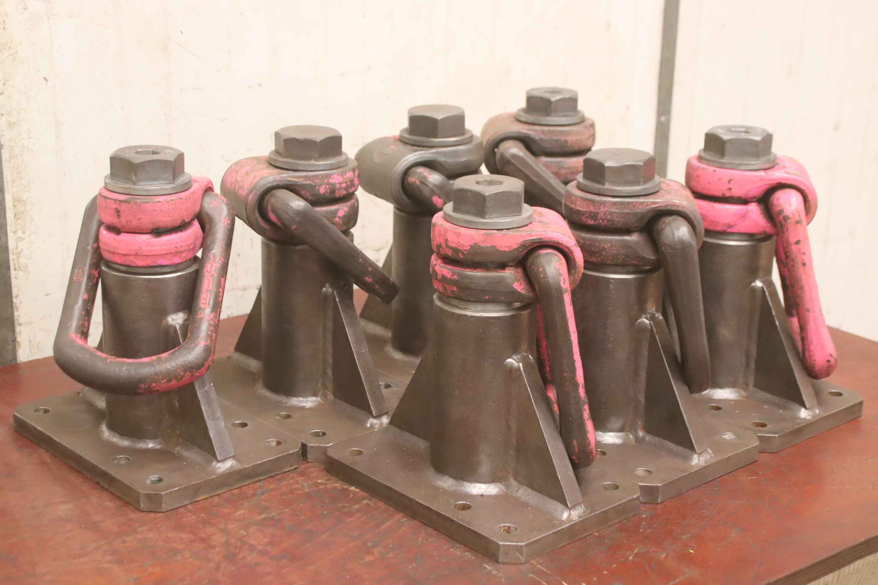 load jack, swivel jack, lifting jack, shackle, load jack, lashing eye, lashing ring, attachment point, load jack thread, lashing point-Manufacturer.RUD, load jack with foldable rotating load bracket 7 pieces-Load bracket: type VLBG 15 t M 42-Base plate: 280 x 190 mm-Hole spacing: 220/140 x Ø17 mm, see photos-Delivery/Price: complete-Dimensions 280/190/H315 mm each-Weight: 31 kg/piece