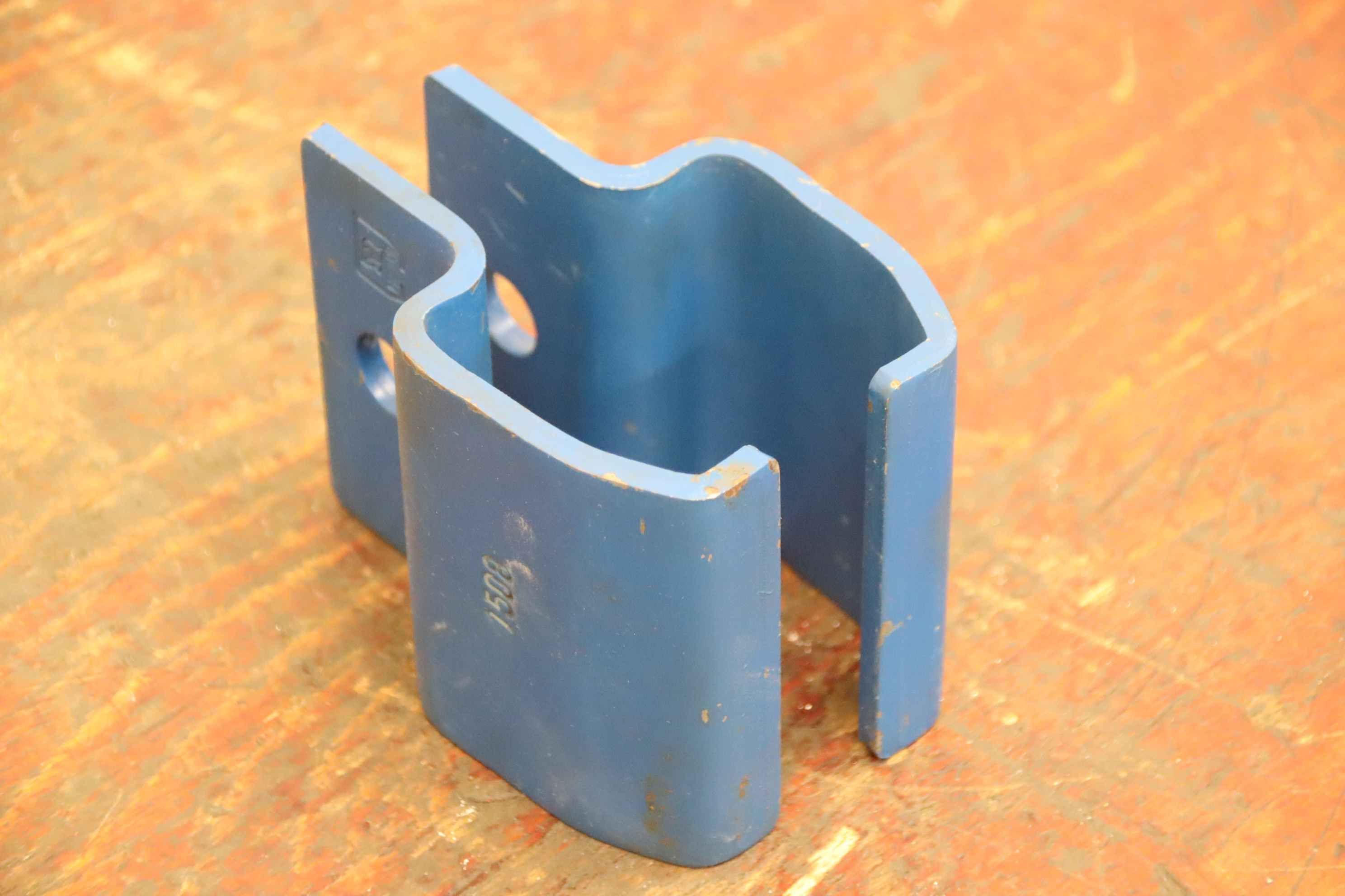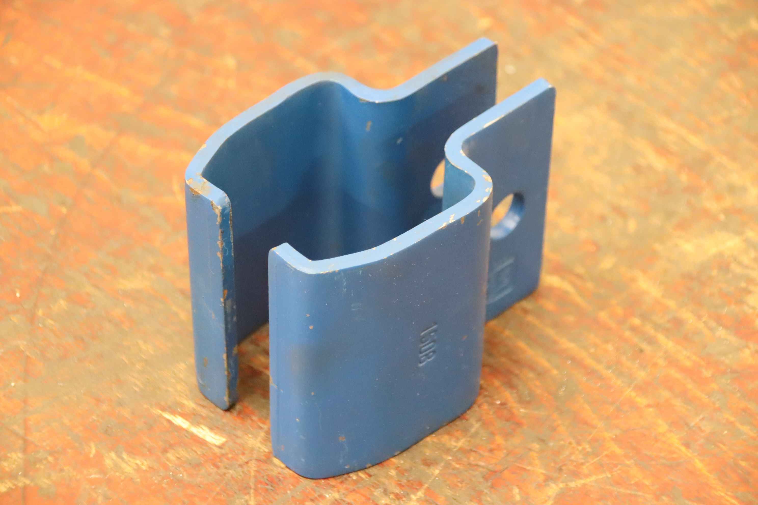 Suspension clamp, helmet rail holder, helmet rail, running rail, rail holder, clamping sleeve, sliding gate sleeve-Manufacturer: Helm, suspension clamp rail holder galvanized blue painted-Type: 1508-Dimensions: see photos-Quantity: 10x Suspension clamp available-Price: per piece/ minimum order 2 pieces-Dimensions: 90/70/H120 mm-Weight: 0,6 kg/piece