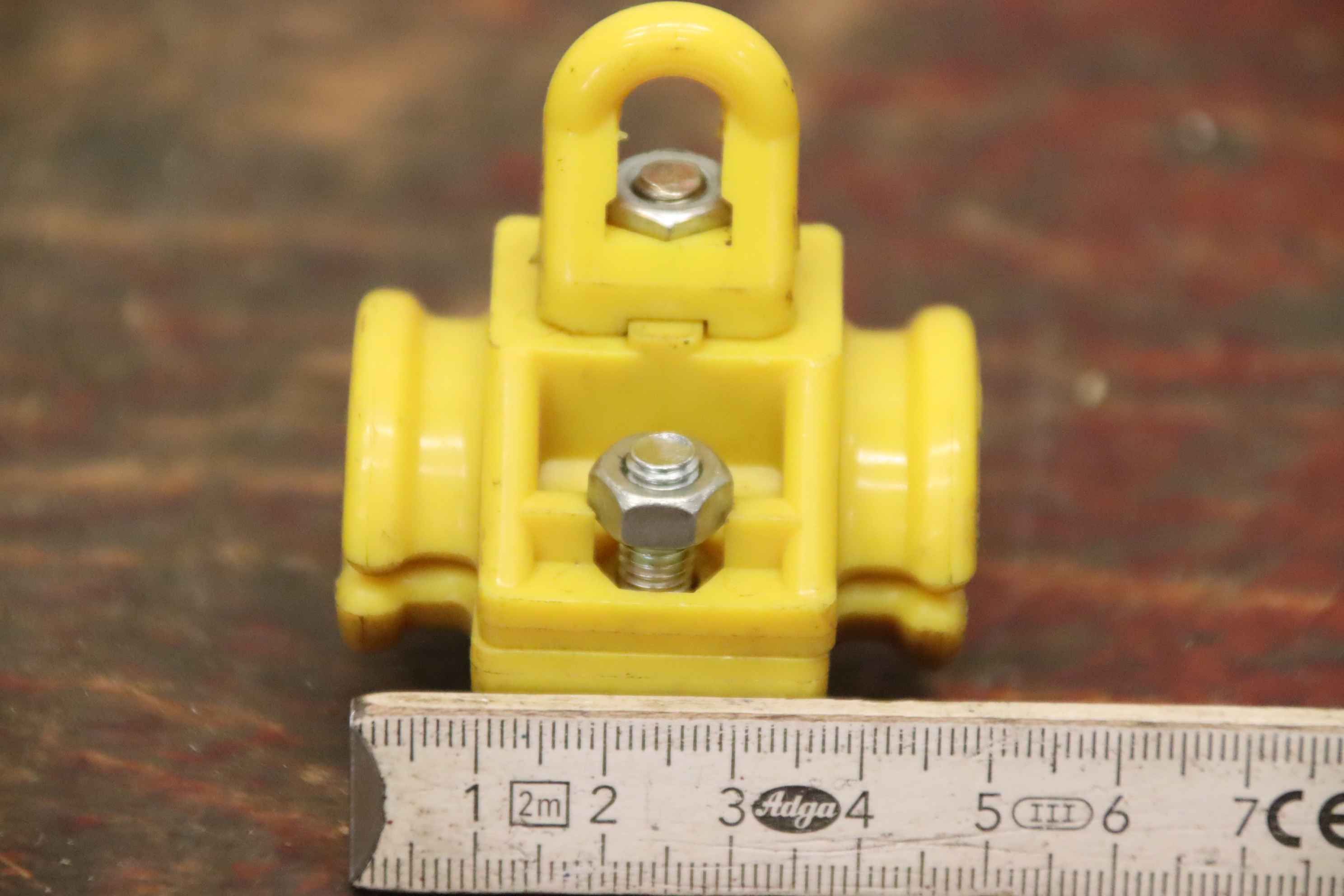 Suspension clamp, clamp sleeve, sliding gate sleeve, cable clamp, cable trolley, cable trolley component, cable holder-Cable clamps: cable holder-Type: Round 16-25 mm-Number: 16x holders available-Price: per piece, minimum order 5 pieces-Dimensions: 50/50/63 mm-Weight: 0.1 kg/piece