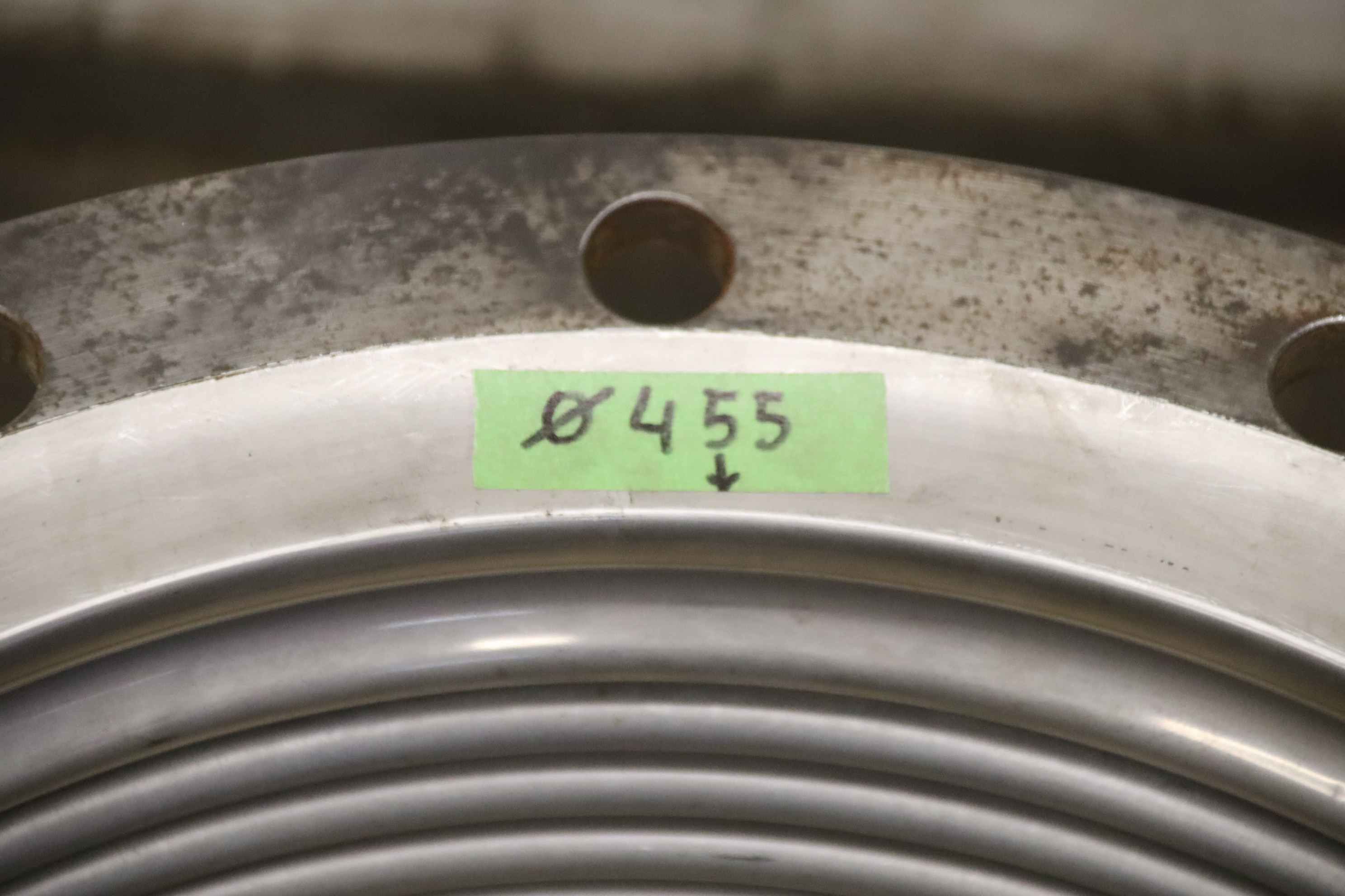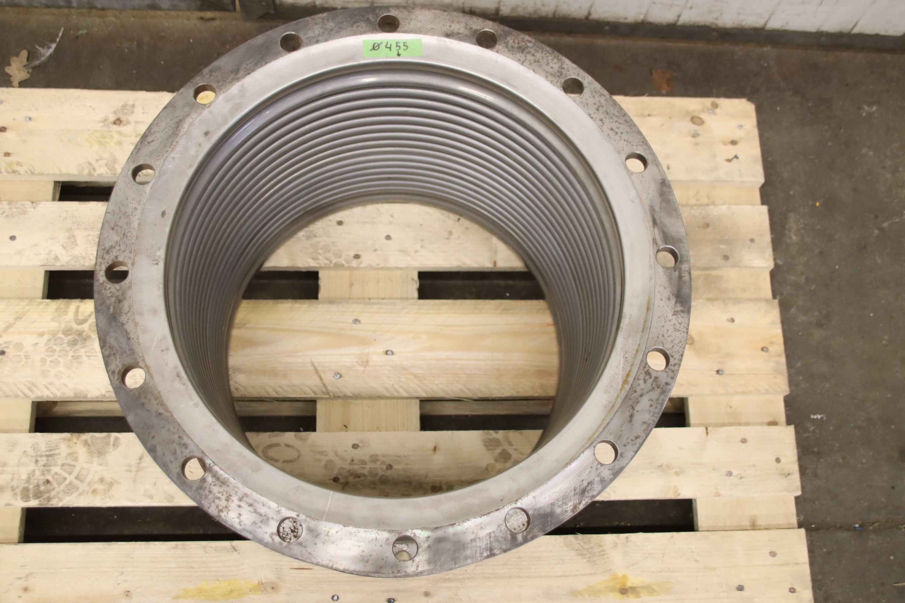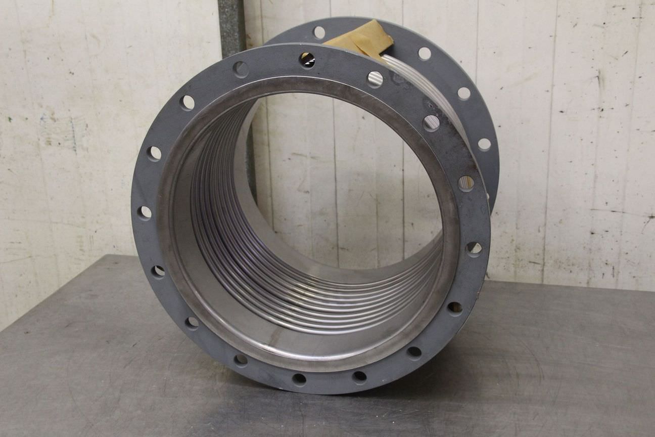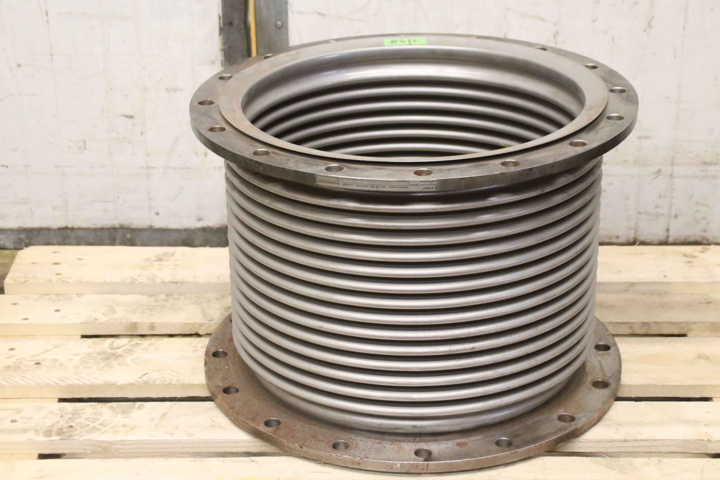 Vibration damper, compensator, damper, expansion compensator, expansion piece, axial compensators, stainless steel compensator, steel expansion compensator, steel expansion joint -Manufacturer: Witzenmann, Hydra axial compensator unused -Type: ABG 01.0450.196.0 -Nominal diameter: DN 450 / Length 406 -Material: Bellows stainless steel -Bolt circle: Ø 575 / 22 mm -Number: 2x dampers available -Price: per piece -Dimensions: Ø 600 x 415 mm -Weight: 40 kg/piece