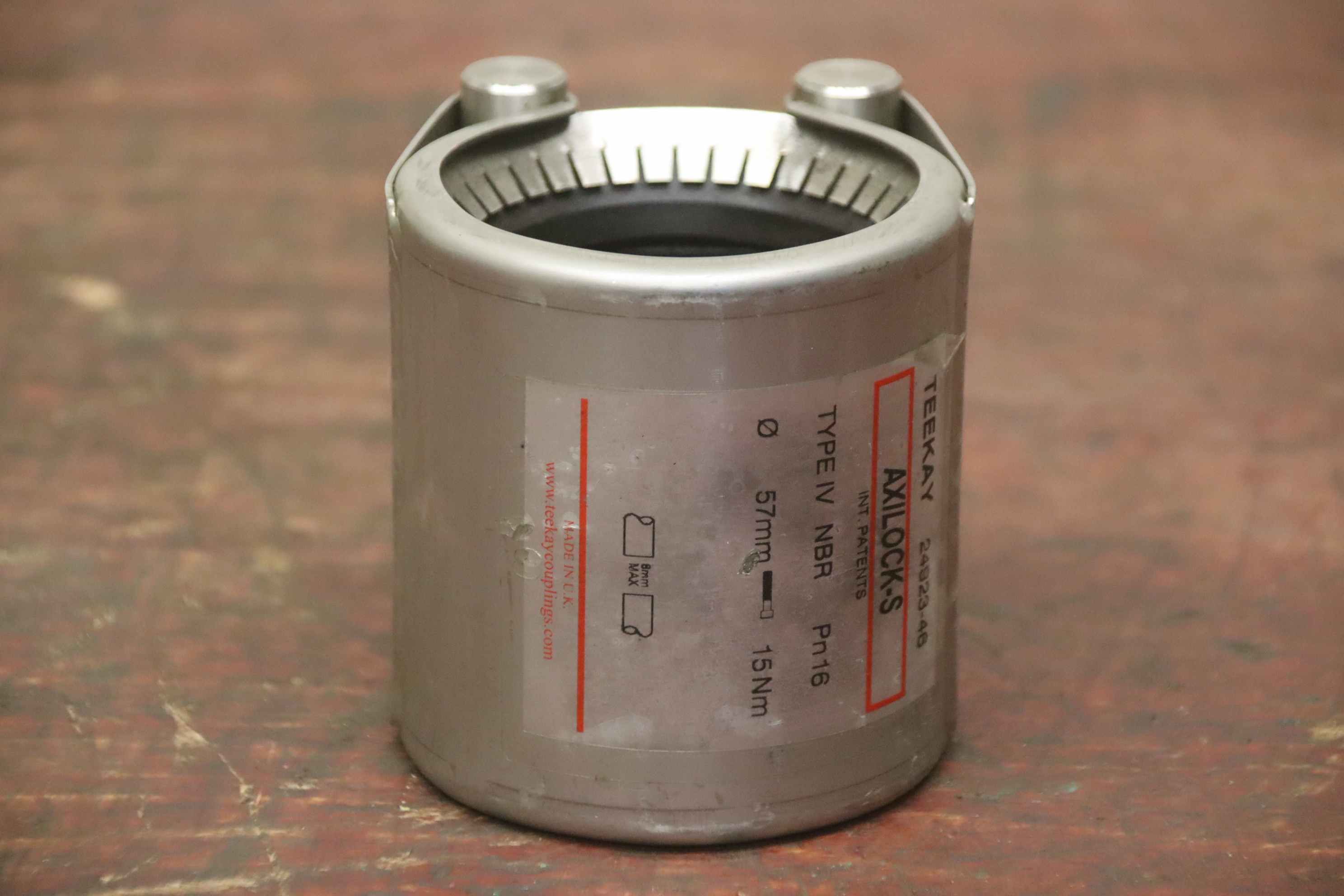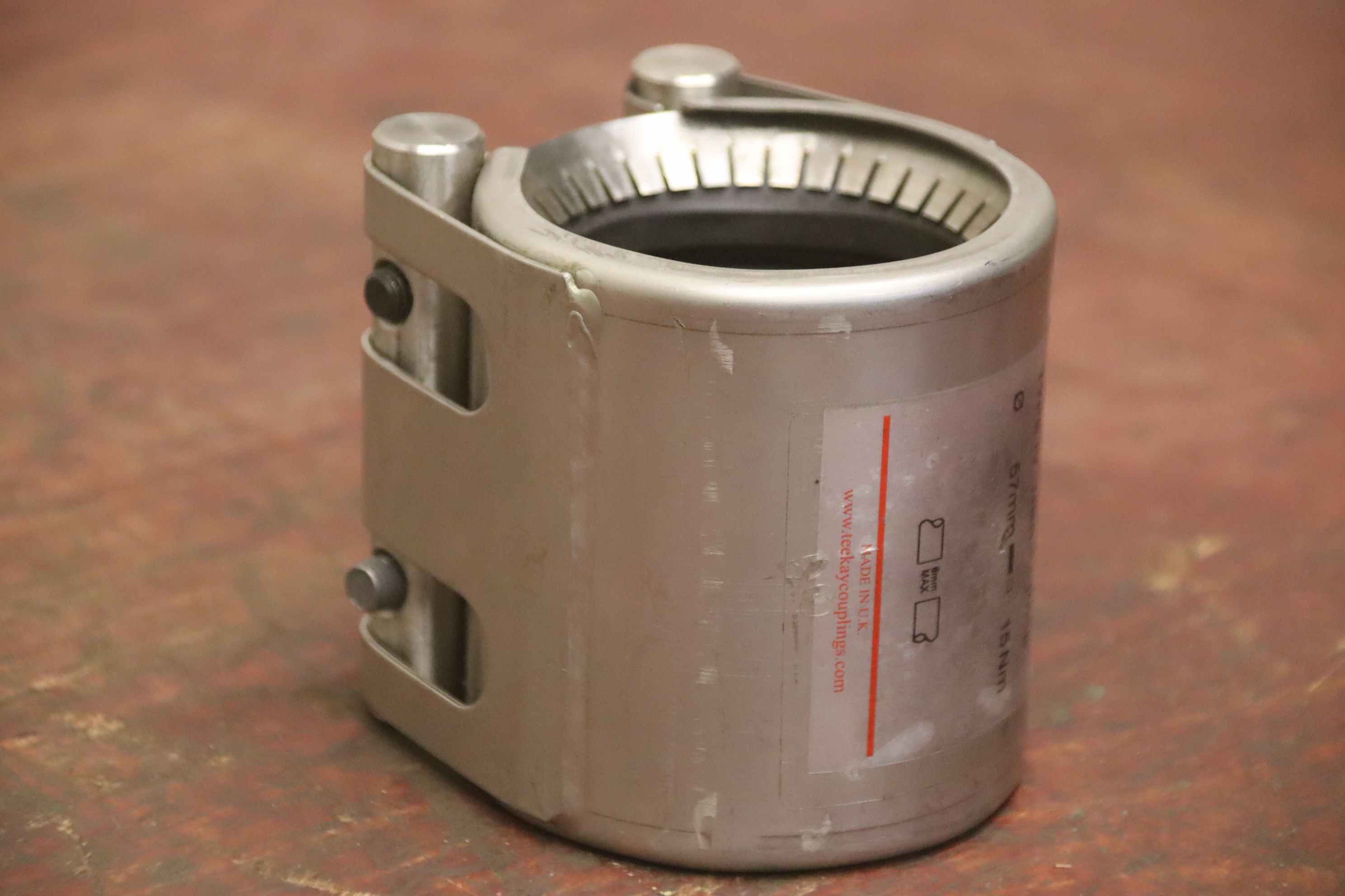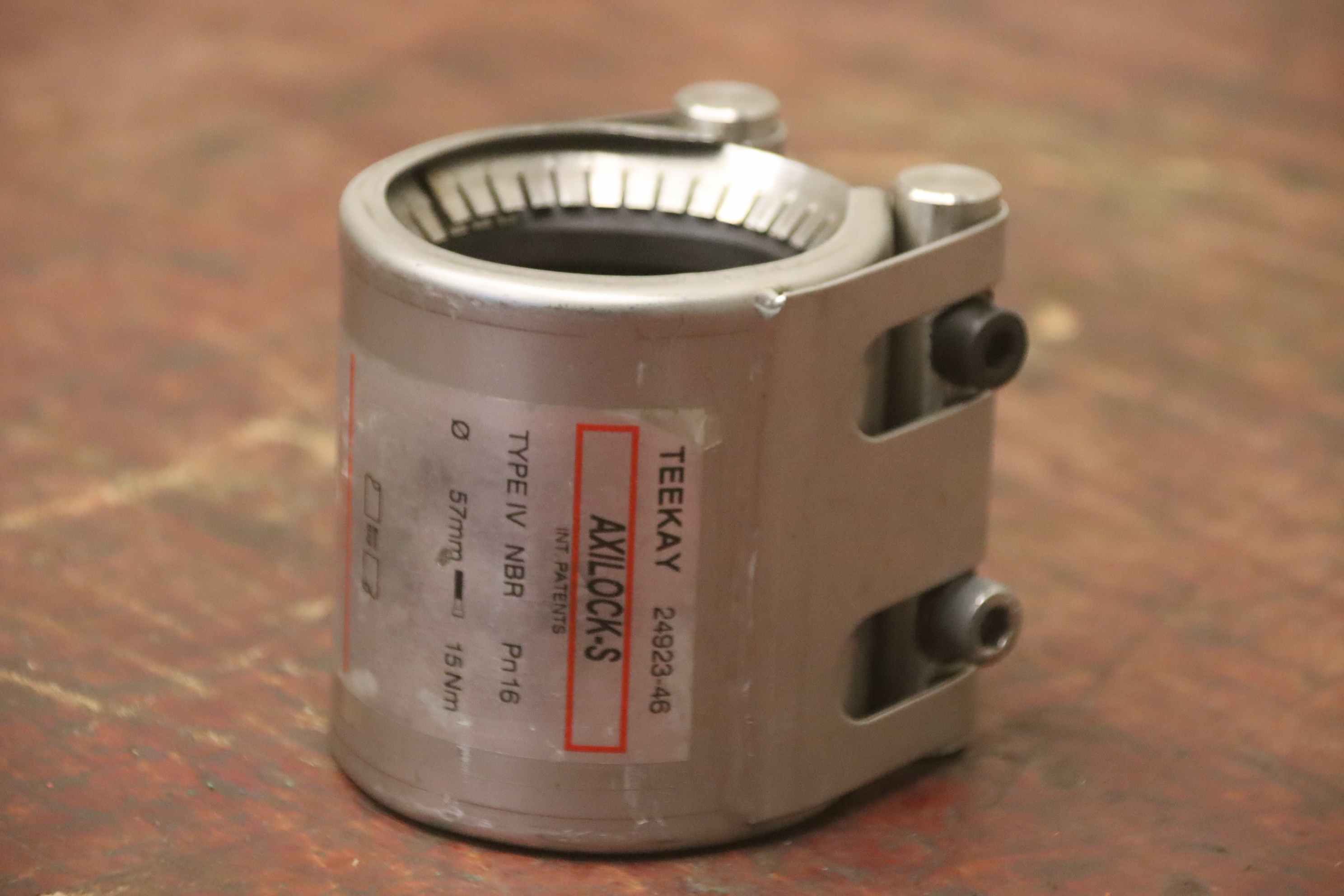 Stainless steel couplings, pipe coupling, pipe sleeve, pipe connection-Manufacturer: TEEKAY, pipe coupling AXILOCK-S Type IV-Inside: Ø 57 mm / 2.2 inch-Pressure: 16 bar-Number: 1x clutch available-Dimensions: 95/85/H90 mm-Weight: 0.9 kg