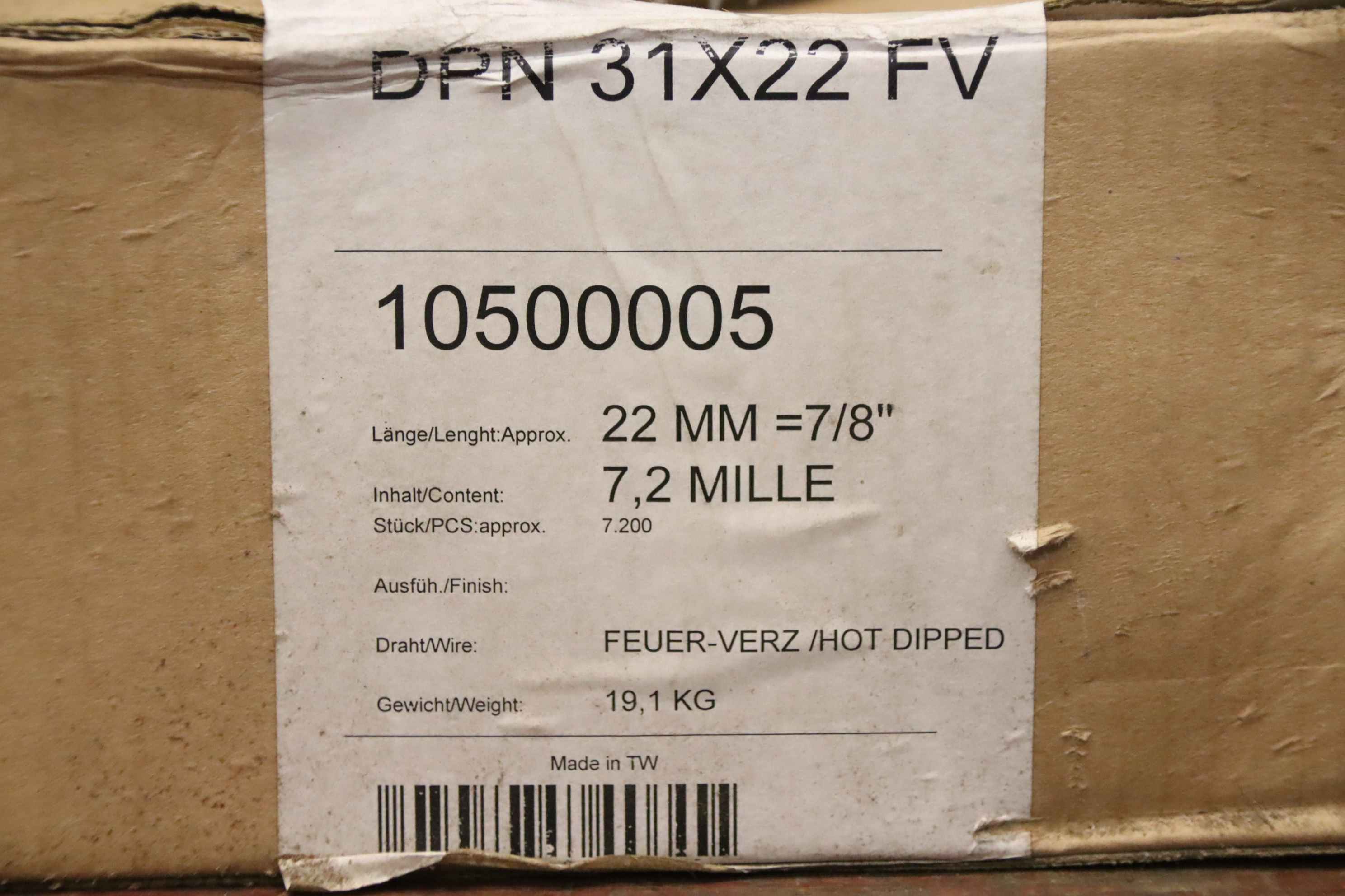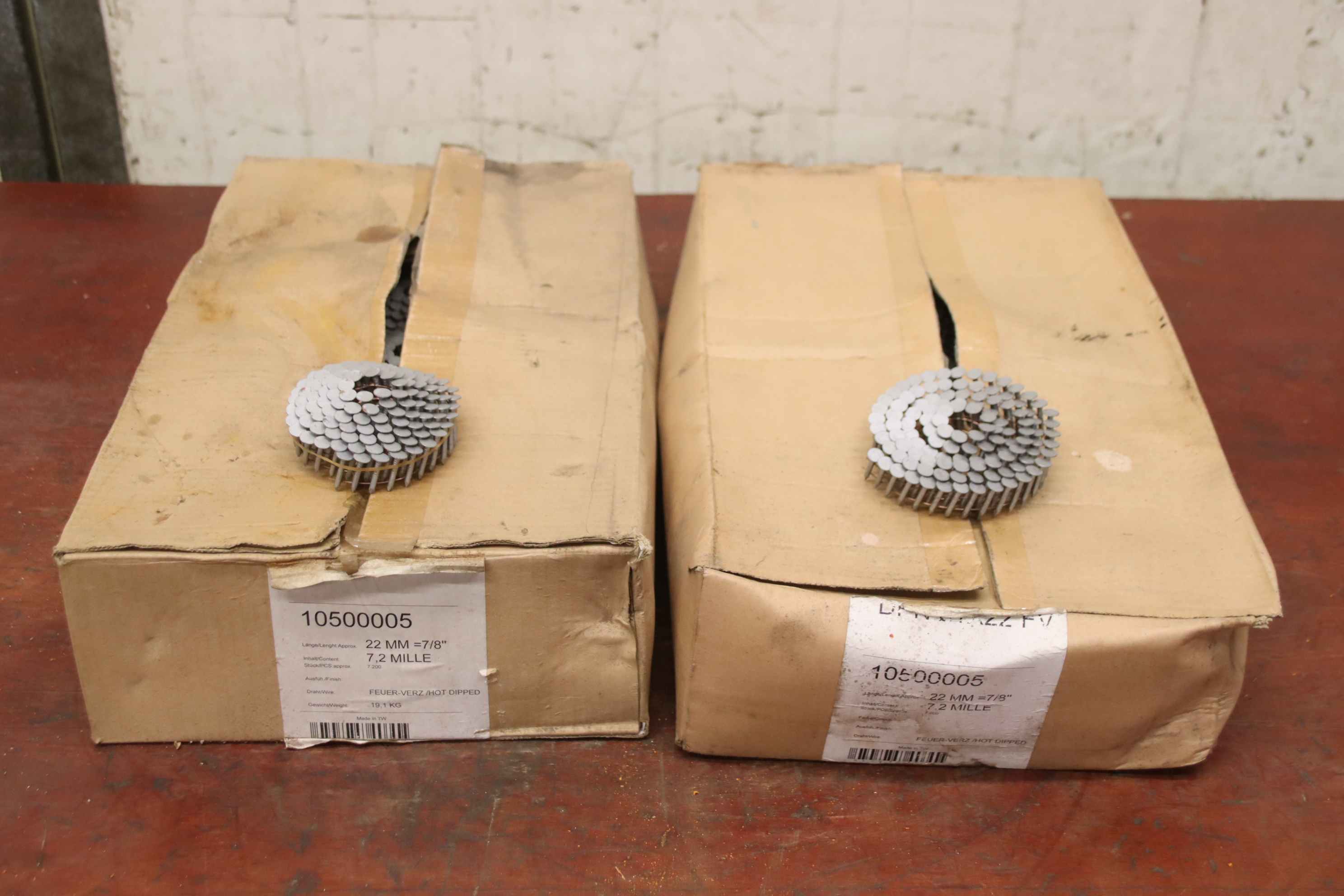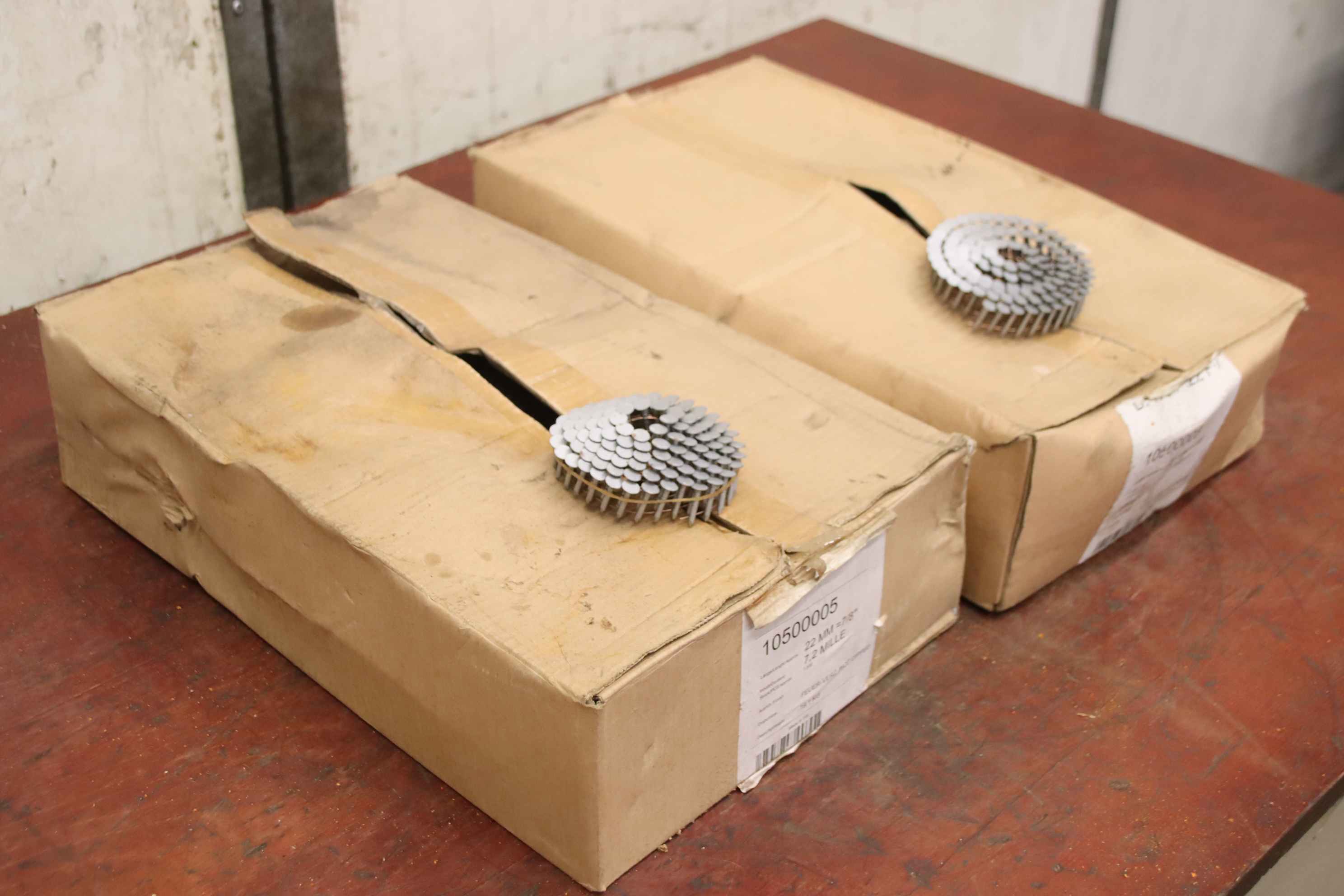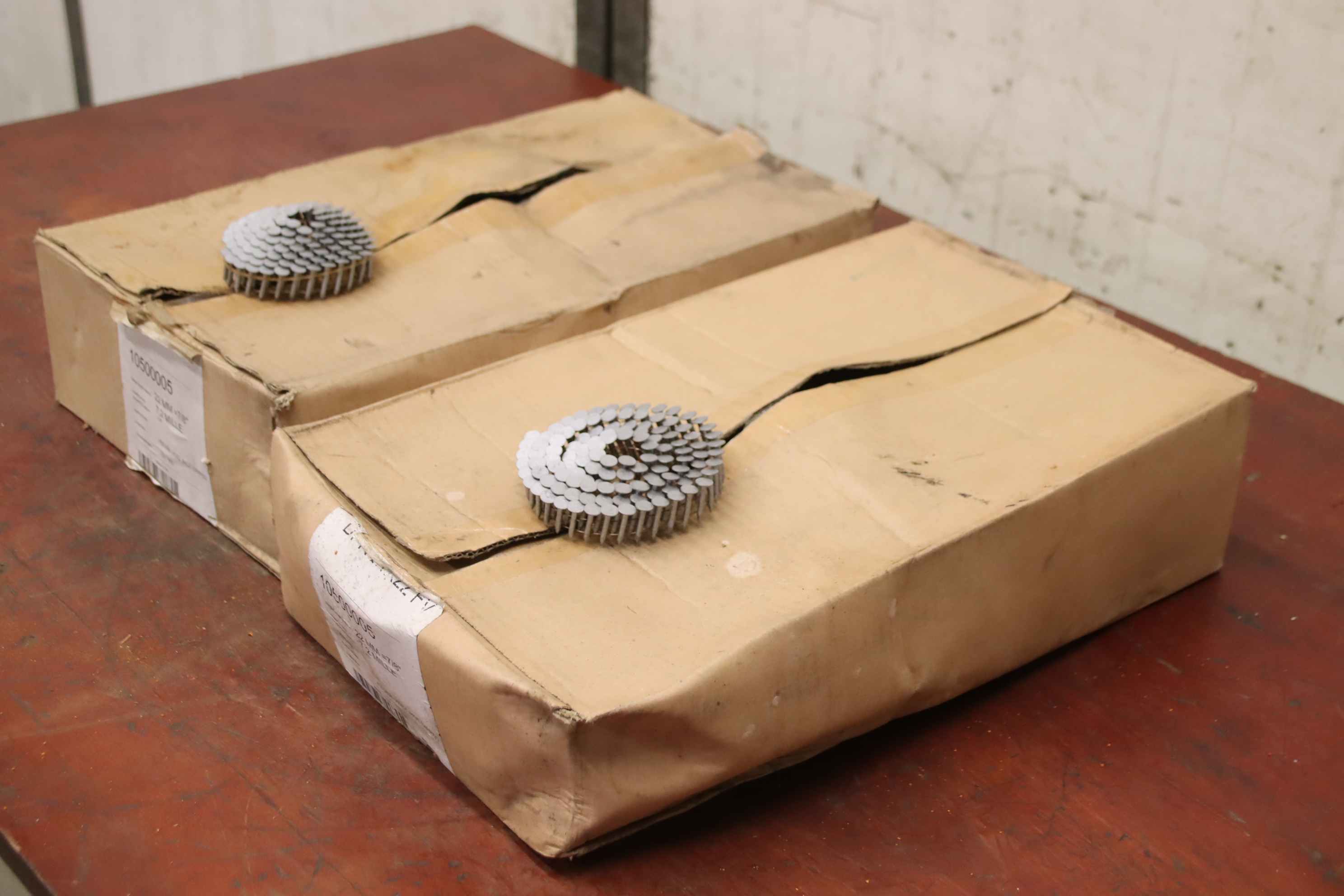 Roofing nails, strip nails, nail strips, roofing nail rolls, coil roofing nails -Roofing nails: Nail rolls, 2 partially used cartons/total approx. 10,000 pieces -Type: DPN 31x22 FV Hot-dip galvanized -Price/Sale: complete -Dimensions: 470/280/H240 mm -Total weight: 17.1 kg