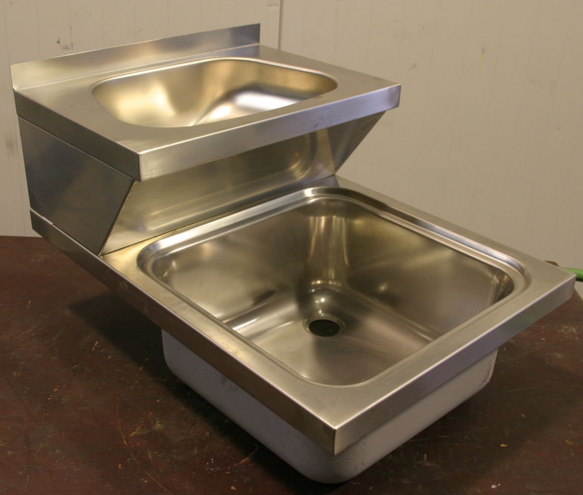 Hand wash basin with sink, wash basin -Stainless steel sink -Upper basin size: 390 x 285 x 120 mm -Lower basin size: 400 x 400 x 200 mm -Number: 6x pools available -Price: per piece -Dimensions: 700/500/H445 mm -Weight: 9.1 kg