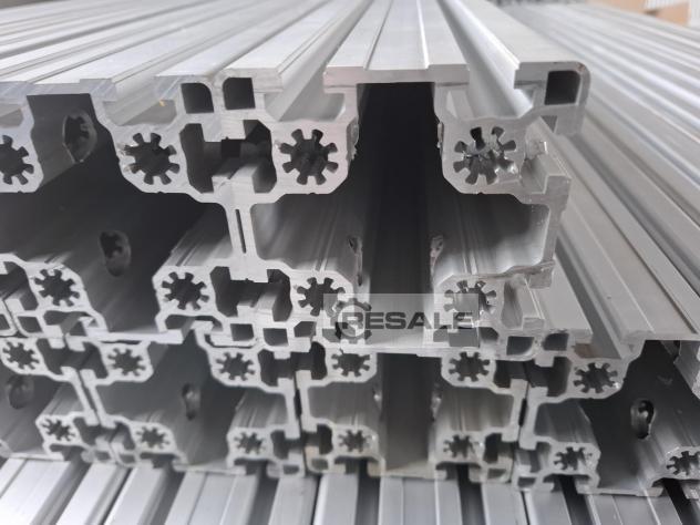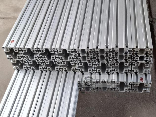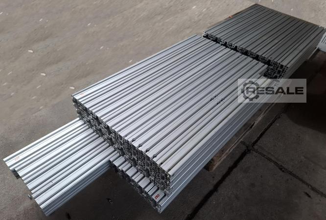 Profil aluminiowy, 44m, tylko 25 €/m, 90x90 L B Typ Groove 10 lekki, , używany-Top Specjalna cena Przy zakupie kompletnego pakietu 44 m oferujemy absolutnie najlepszą cenę. Jeśli posiadasz numer VAT, z przyjemnością wystawimy Ci fakturę bez podatku VAT. Najlepszy stan: Profile zostały usunięte z nowej maszyny, która nigdy nie była eksploatowana. Zakres dostawy: 2 sztuki 90x90x2900mm 4 sztuki 90x90x2300mm 12 sztuk 90x90x1160mm 14 sztuk 90x90x1000mm