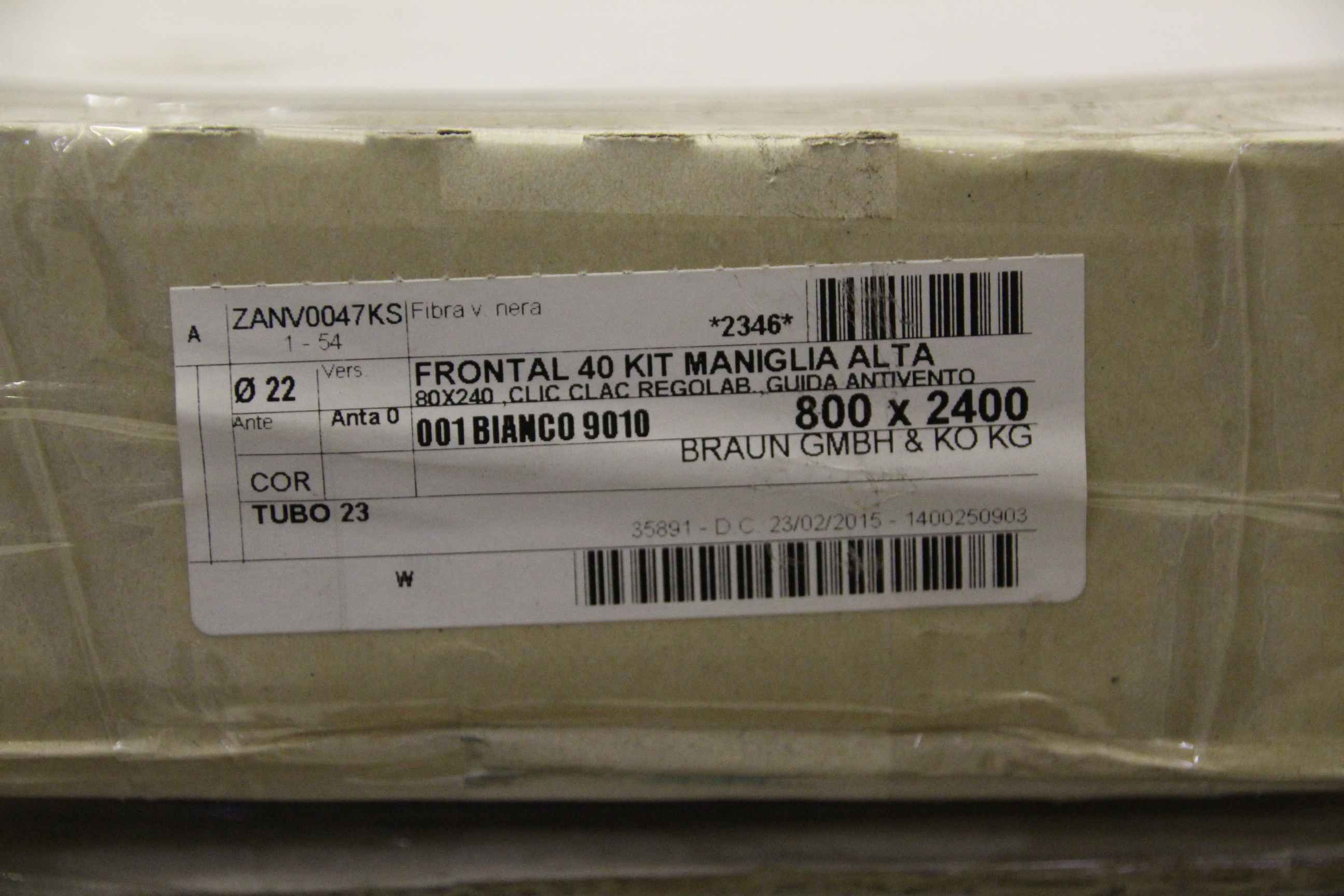 Roof window roller shutters, blinds, roller shutter curtains, blind profiles-different profiles-Frontal 40: Kit Maniglia Alta-Measurements see: photos/piece lot-Sale: complete-Dimensions: 2800/1150/H550 mm-Weight: 188 kg